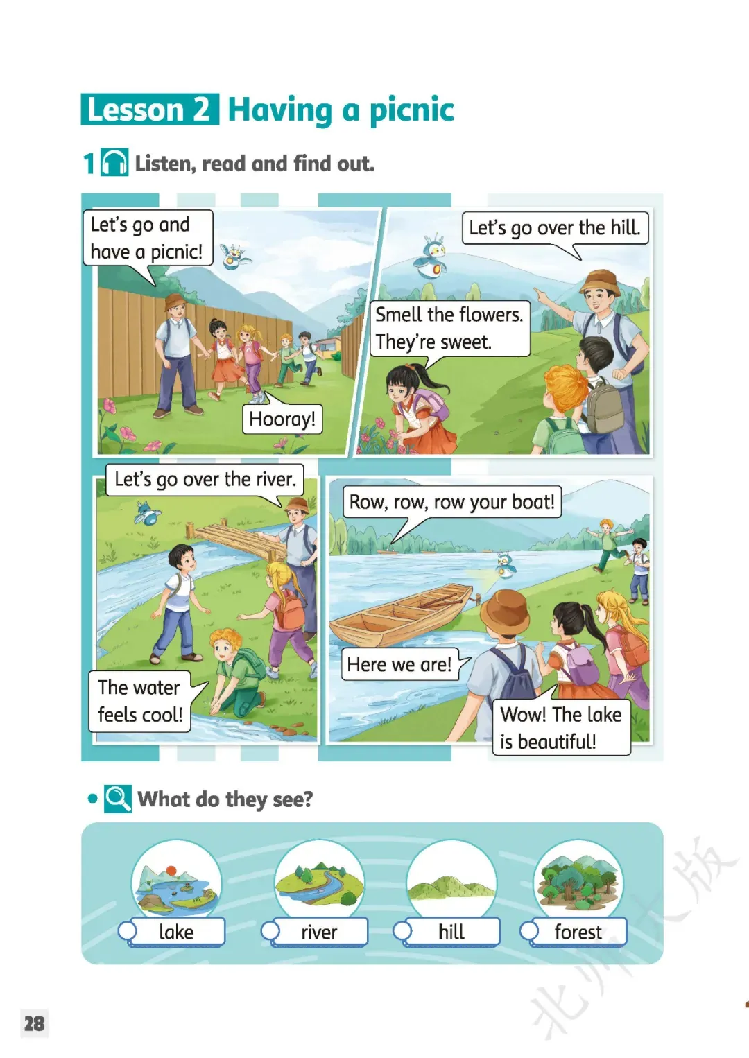 当前位置:首页>小学教材>【课文听力】(新教材)北师大版小学英语三下 Unit 3 Going outdoors-Lesson2 (P28~p29)