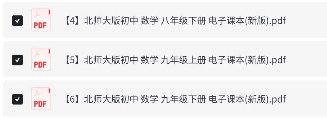 2026年最新北师大版初中数学电子课本合集,含789年级上下册,共6本,PDF高清电子版,可下载打印!