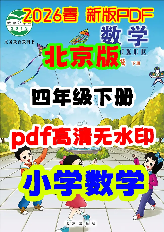 #26年春新小学数学四年级下册北京版电子课本教材pdf高清无水印电子版可下载打印预习复习备考教学学习专用一年级二年级三年级四年级五年级六年级上册下册