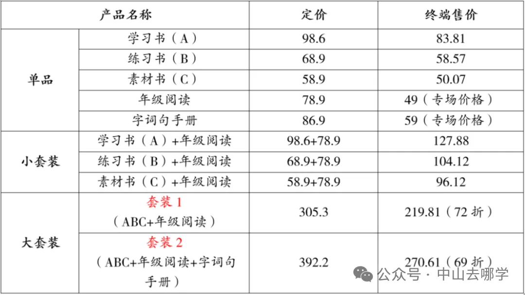 强调!!!往年套装组合没有低于8折的,今年给大家算笔账,购买套装1(ABC+年级阅读)的,这次能比平时大优惠的时候,再便宜24.4元,相当于72折买下,购买套装2(ABC+年级阅读+字词句手册)的,这次能比平时大优惠的时候,再便宜43.1元,相当于69折买下。所以,第一次购买的新粉,推荐果断入手大套装,不仅好用,还特别合适~~