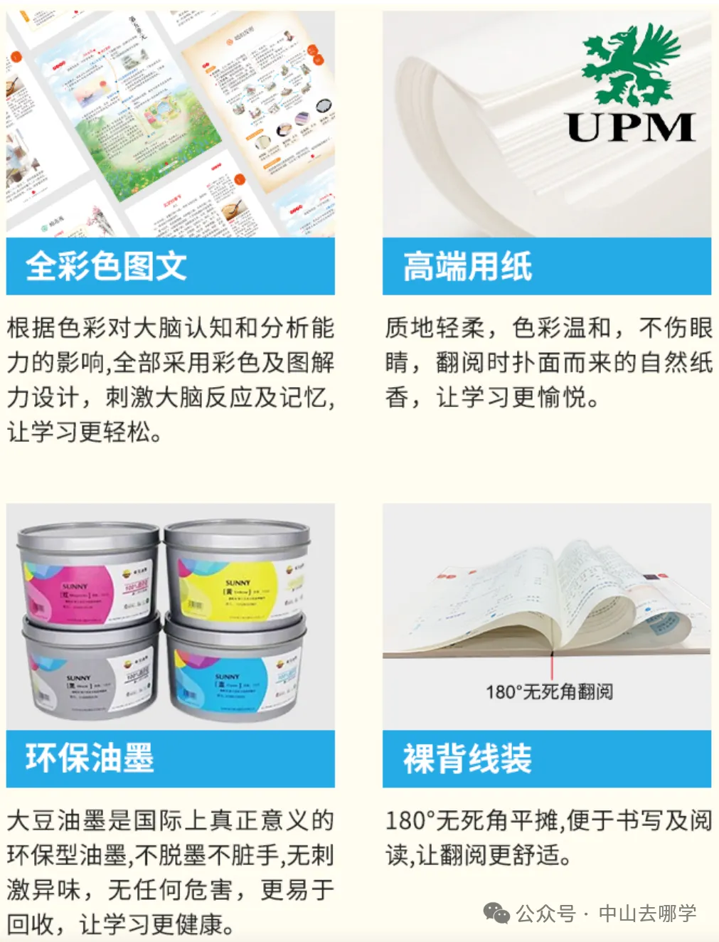 这种把在艺术书上才能见到的“裸背锁线胶订”的装订方式用在教辅书上,不但美观别致,孩子们用起来,可以180度平摊开,极为方便。