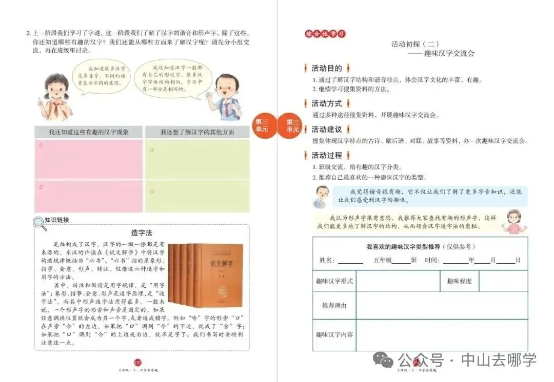 统编教材的课文不同,“绘本课堂”的讲解形式也不同。这篇课本上的习作例文,除了给正常体例的讲课文外,还根据教材的特点,采用批注的方式,给出了写法借鉴。3-5年级的下册教材当中都有一个特殊单元——综合性学习单元,学习方式和讲课方法,也和正常的课文不同:(以五下综合性学习单元为例)《字词句手册》的配图,也都是与课文内容一致,《竹节人》一课,配的都是竹节人的图,《小猴子下山》更是按照课文情节,配的都是小猴子的图。4.创意·创新