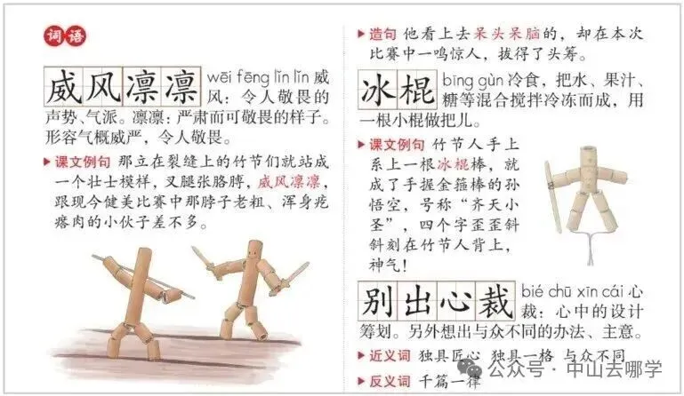 这是独创的与统编教材思想一致的情景解词图,把内容相关联的词放在一张情景图里,便于通过场景理解词义、词间关系,也更容易记住。