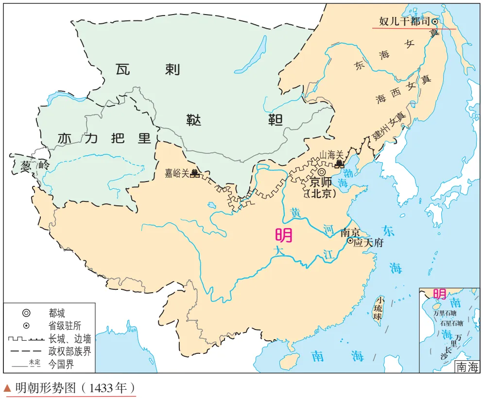 为何明前期全图选宣德八年(1433年)?这可能涉及到奴儿干都司的内迁。