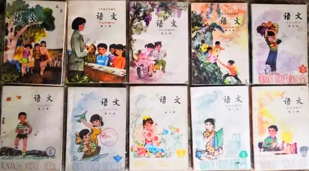 3、全日制十年制学校小学课本·语文(1978秋-1983春)。拨乱反正后的统一教材,拼音先行,入选《小英雄雨来》《桂林山水》等经典篇目,是70–80后共同回忆。