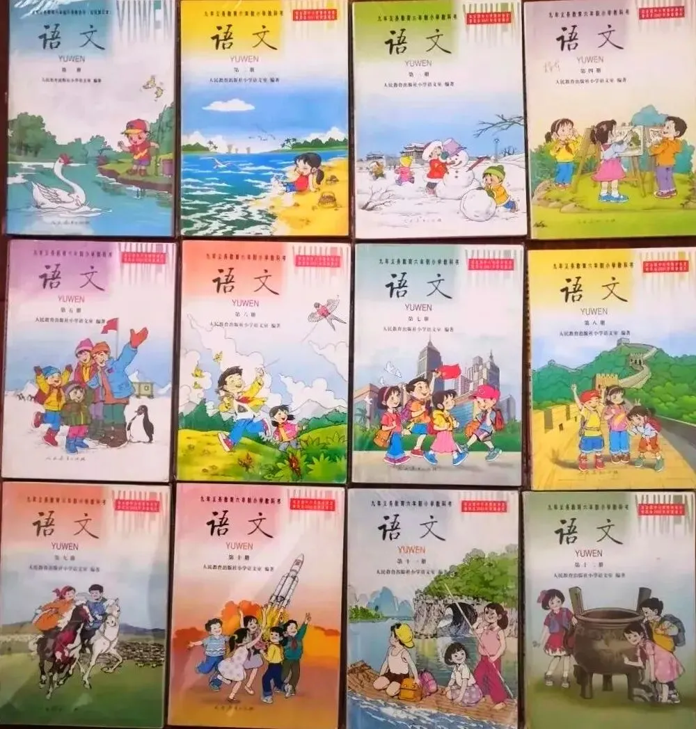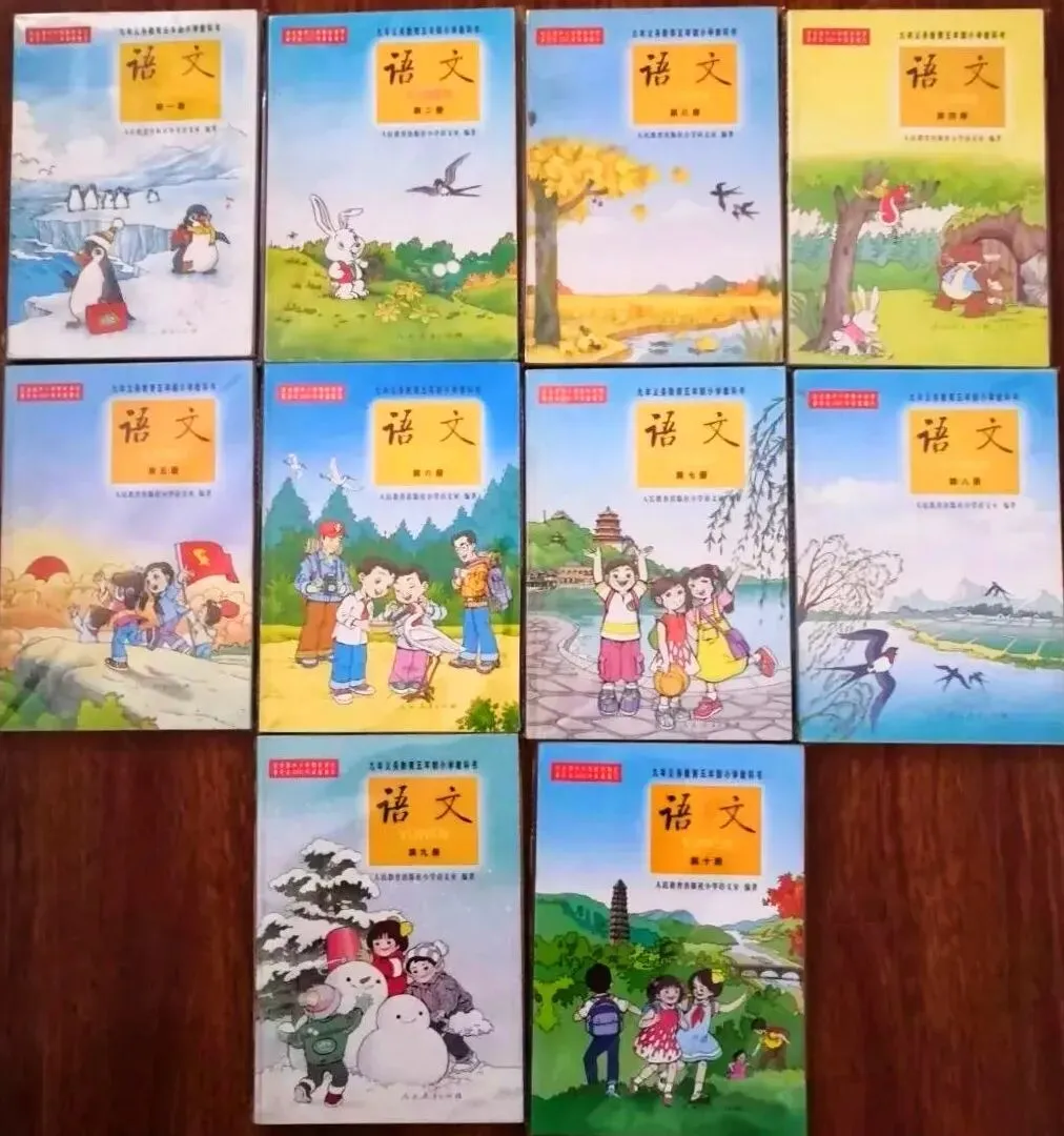 7、义务教育六年制小学教科书实验本·语文(1990秋-1998春)。8、九年义务教育五年制小学教科书·语文(1992秋-2002春)。9、九年义务教育六年制小学教科书·语文(1992秋-2002春)。10、九年义务教育五年制小学教科书·语文(2000秋-2007春)。11、九年义务教育六年制小学教科书·语文(2000秋-2005春)。12、义务教育课程标准实验教科书·语文(2001秋-2016春),这就是所谓的“课程改革”期间使用的教材,2001年开始在部分省市实验,2006年全面推开。