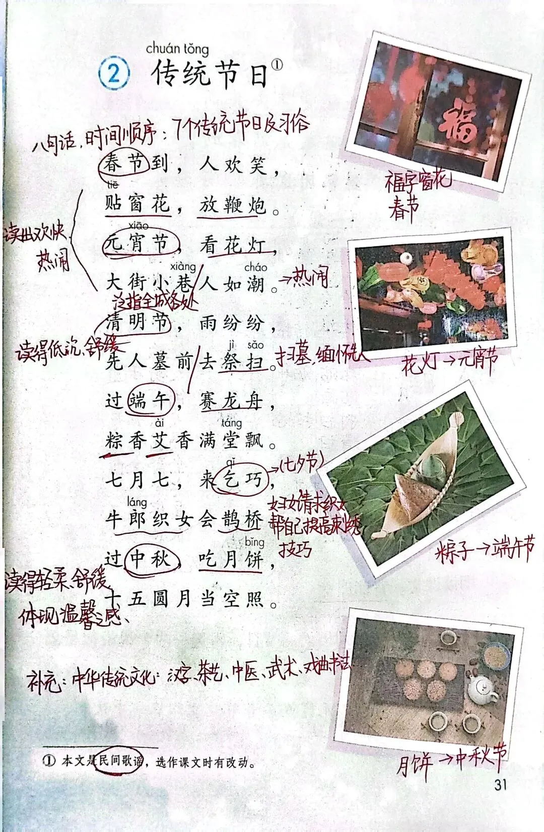 二下第三单元是本册课本的识字单元,围绕“汉字与文化”编排了《神州谣》《传统节日》《“贝”的故事》《中国美食》4篇课文,旨在引导学生在不同语境中识字学词,感受中华传统优秀文化。