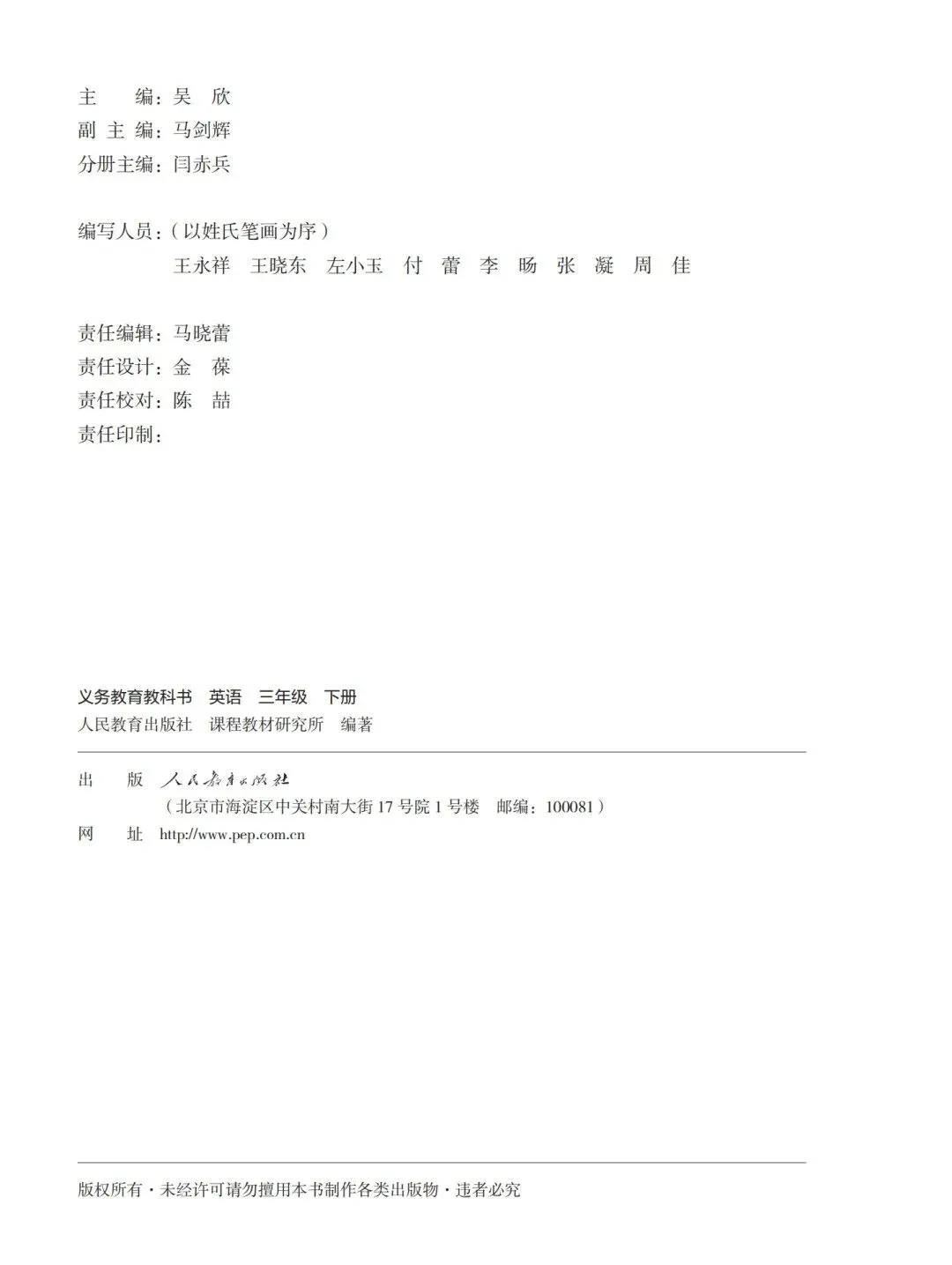 2026年春新教材小学三年级下册英语人教版pep电子课本(高清PDF,无水印可打印)