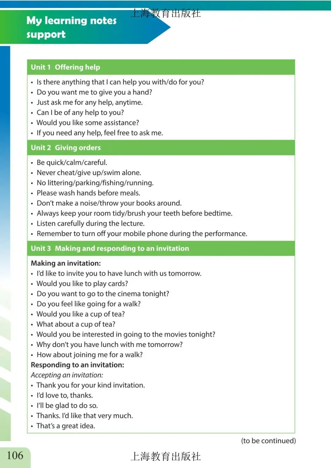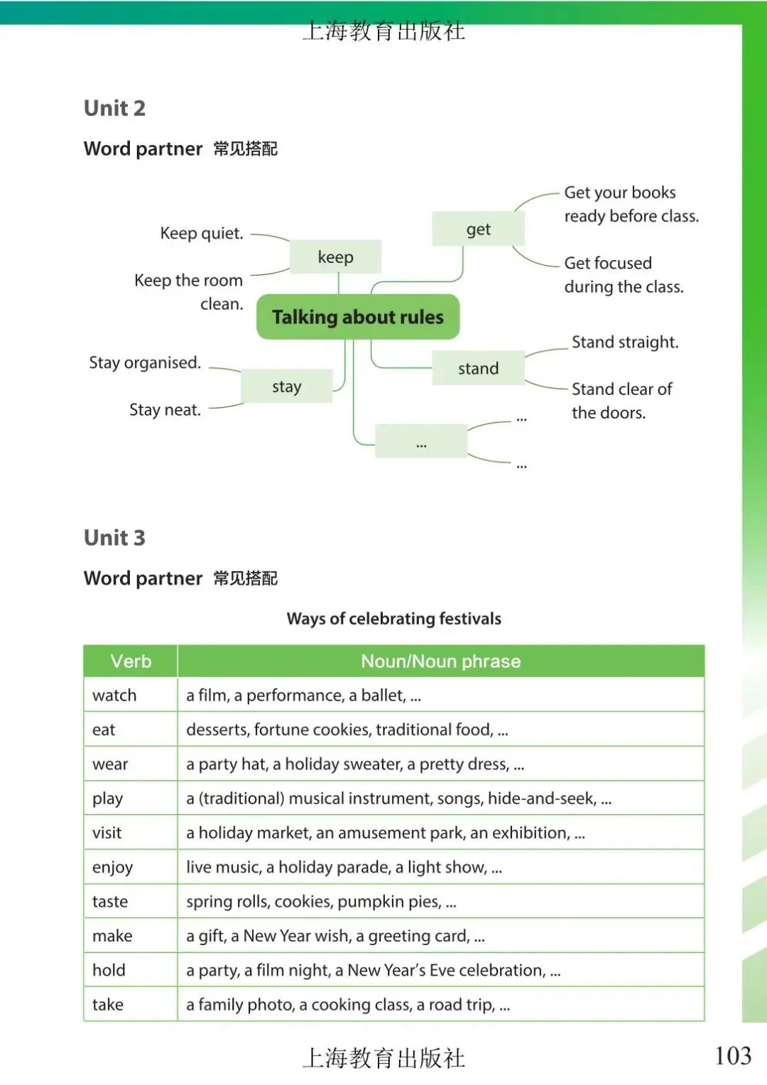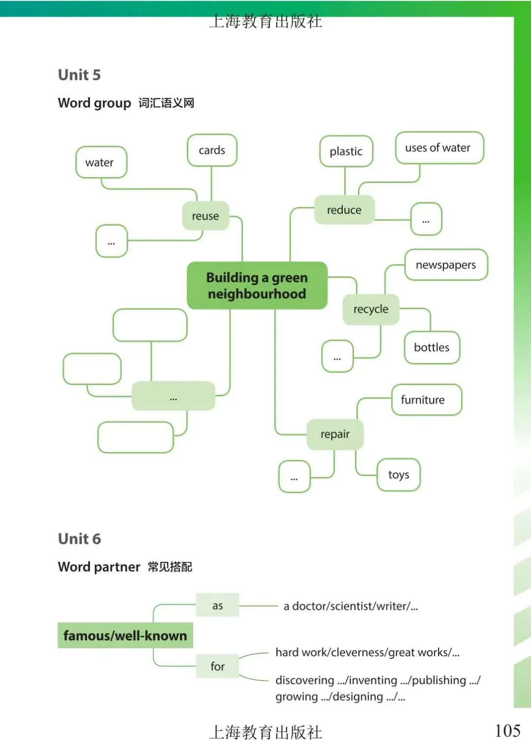 >上海市初中六年级下学期英语教材及音频 附录4 词汇思维导图&常用句