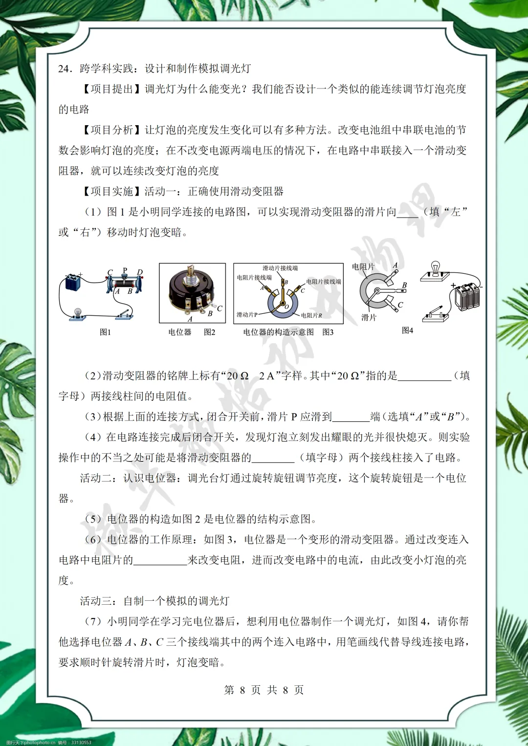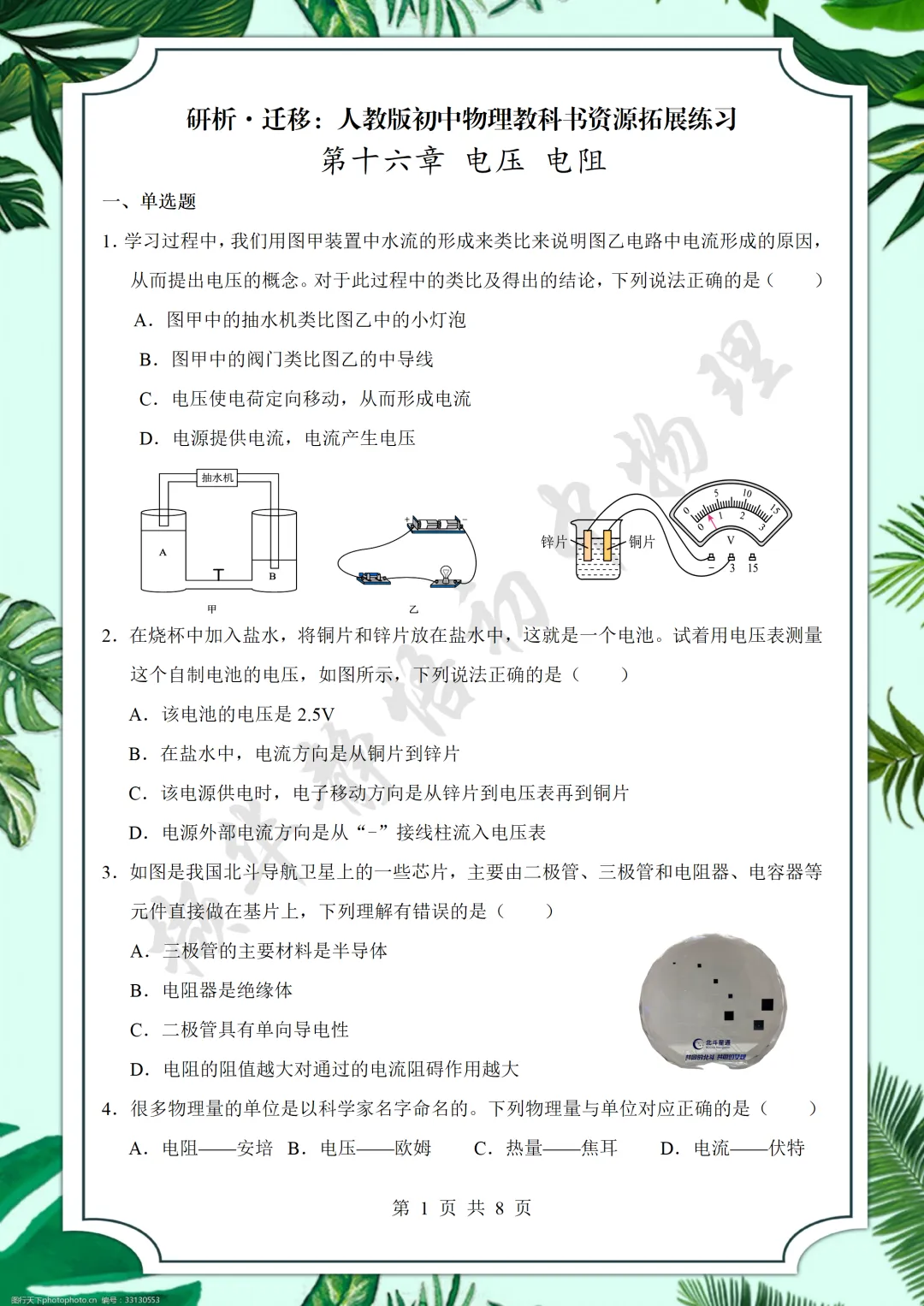 【教学资源】研析·迁移:人教版初中物理教材资源拓展练习——电压 电阻(天津市静海区大丰堆镇中学 于师)