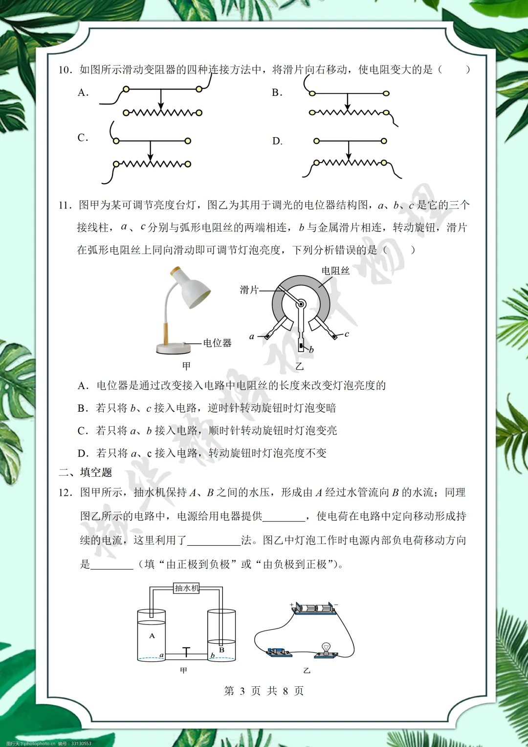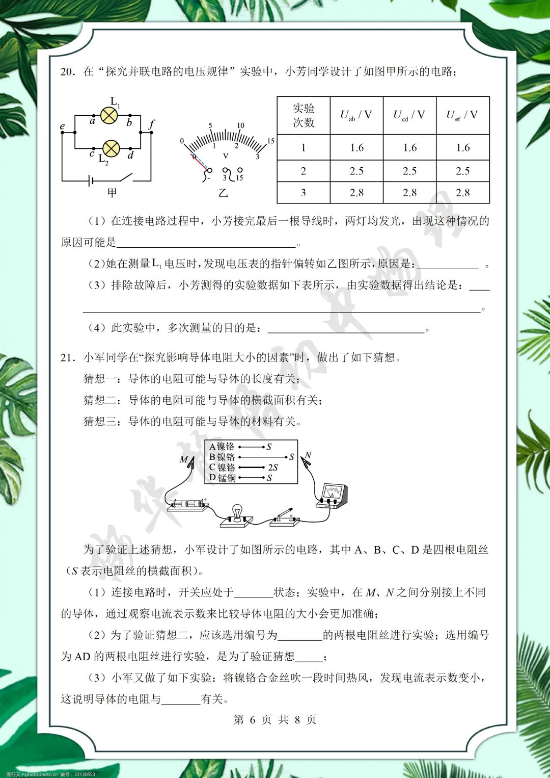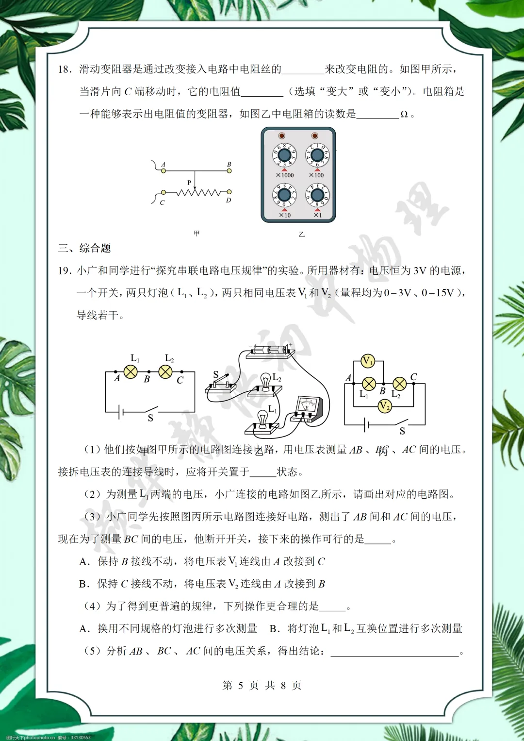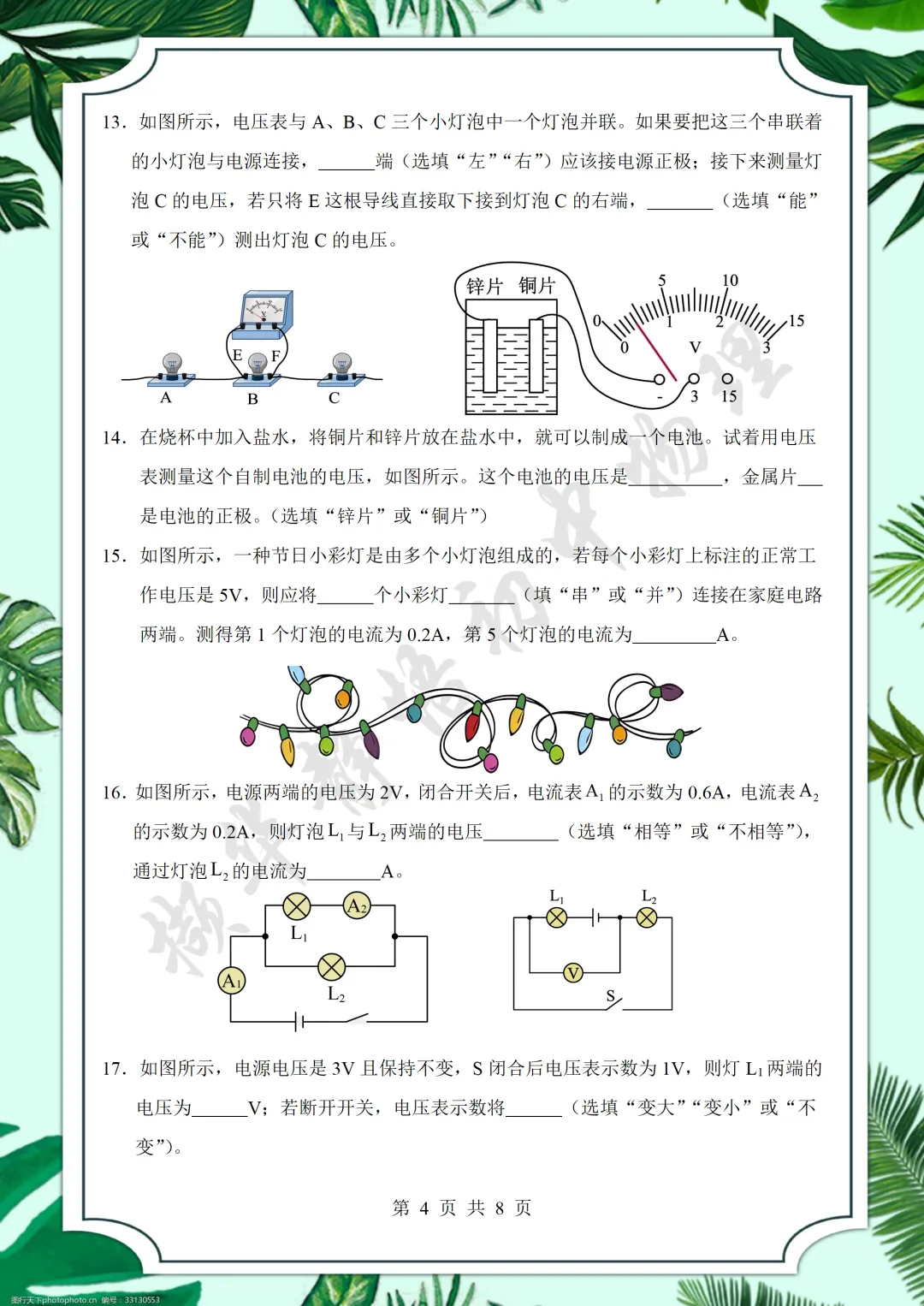 >【教学资源】研析·迁移:人教版初中物理教材资源拓展练习——电压 电阻(天津市静海区大丰堆镇中学 于师)