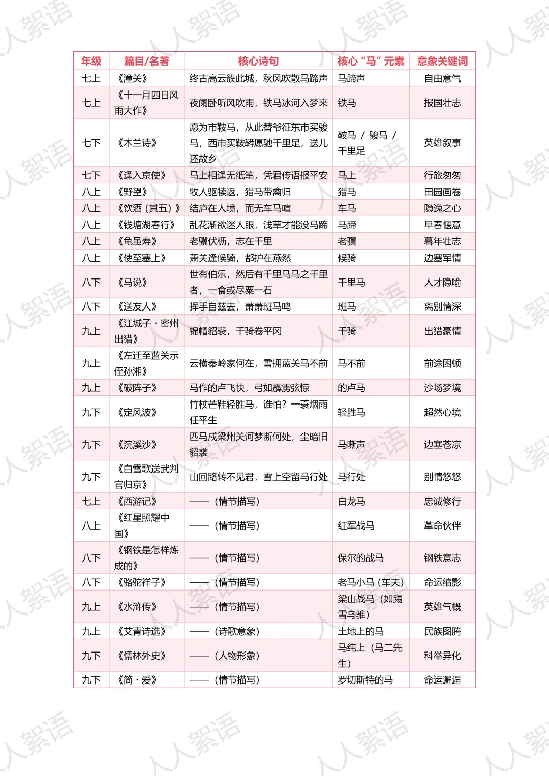 ③ “萧萧班马鸣。”(李白《送友人》)——离群的马匹尚且长嘶惜别,更何况是即将天涯相隔的友人?以马声衬人情,将无形的离愁别绪写得可闻可感。