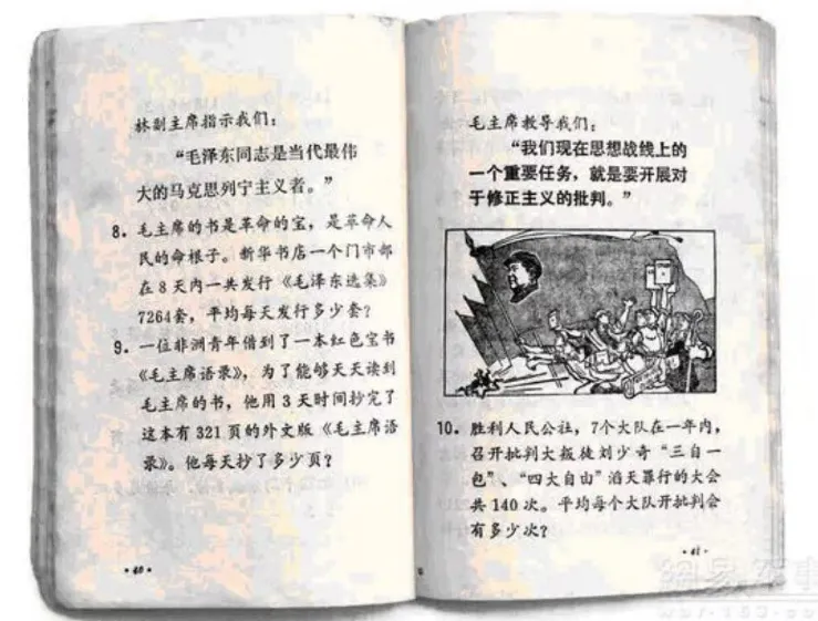 可惜好景不长,1966年5月,文革来了。二年级开始,我读的书就是由学校自己编写油印的语文课本,薄薄的一册,牛皮纸封面(还有其他课本,只油印过一个学期),还姗姗来迟,至于什么内容,早已忘的一干二净了。说实话,从那时起,我就开始讨厌文革,不是说我有多高的政治觉悟,我那时小屁孩一个,啥都不懂,我只是讨厌语文书不漂亮了,还有当时乱哄哄的社会气氛,还有听说罗坊每年的物资交流大会也取消了,说是资本主义的东西。其实那时有没有课本已经不重要了,因为上课也没有照课本读,而是天天学毛主席语录,学老三篇(《为人民服务》、《纪念白求恩》、《愚公移山》),后来还来了一个老五篇,就是在老三篇的基础上加上毛主席的两篇文章《关于纠正党内的错误思想》和《反对自由主义》。那时候老师规定,老三篇必须背诵,背不出就不准回家,老师的严格要求也有好处,锻炼了我们的记忆力。总之,二年级学的几乎都是毛主席语录。