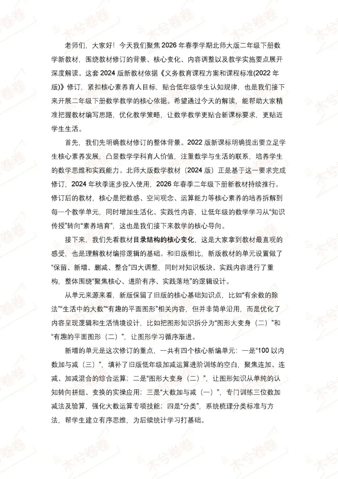 4-2026年春季北师大版二年级下册数学新教材解读培训8页逐字稿