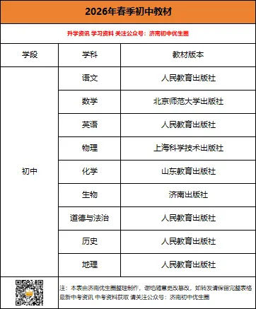 新学期将至,据了解2026年济南初二下册、初三物理下册将启用新教材,小初老师整理济南初中、高中最新电子课本,大家可以利用寒假的时间提前预习呀!