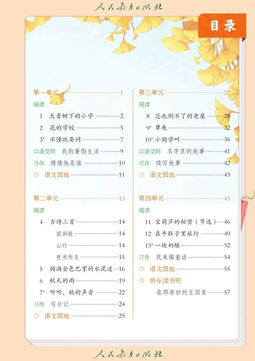 以下为部分内容展示,下载完整部编版小学三年级语文上册电子版教材,本教材是2024年审定的最新版教材,下载电子版请到页尾【免费资料下载】。