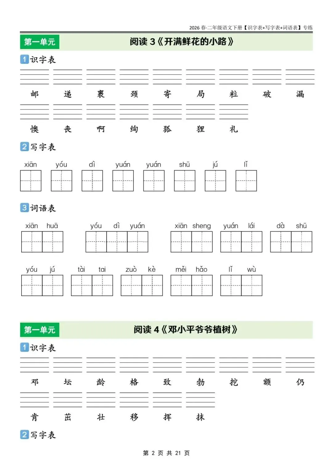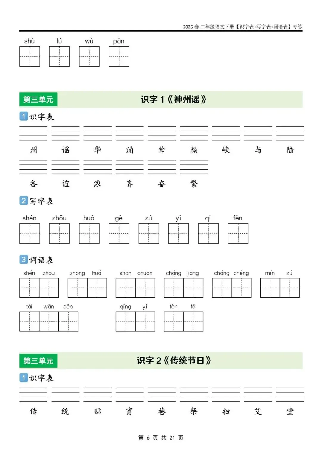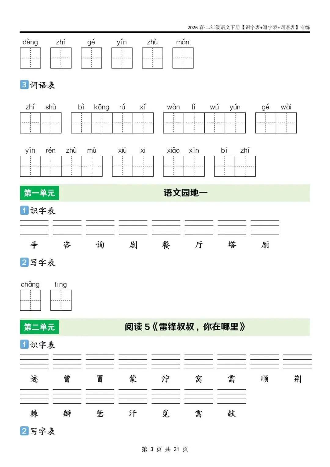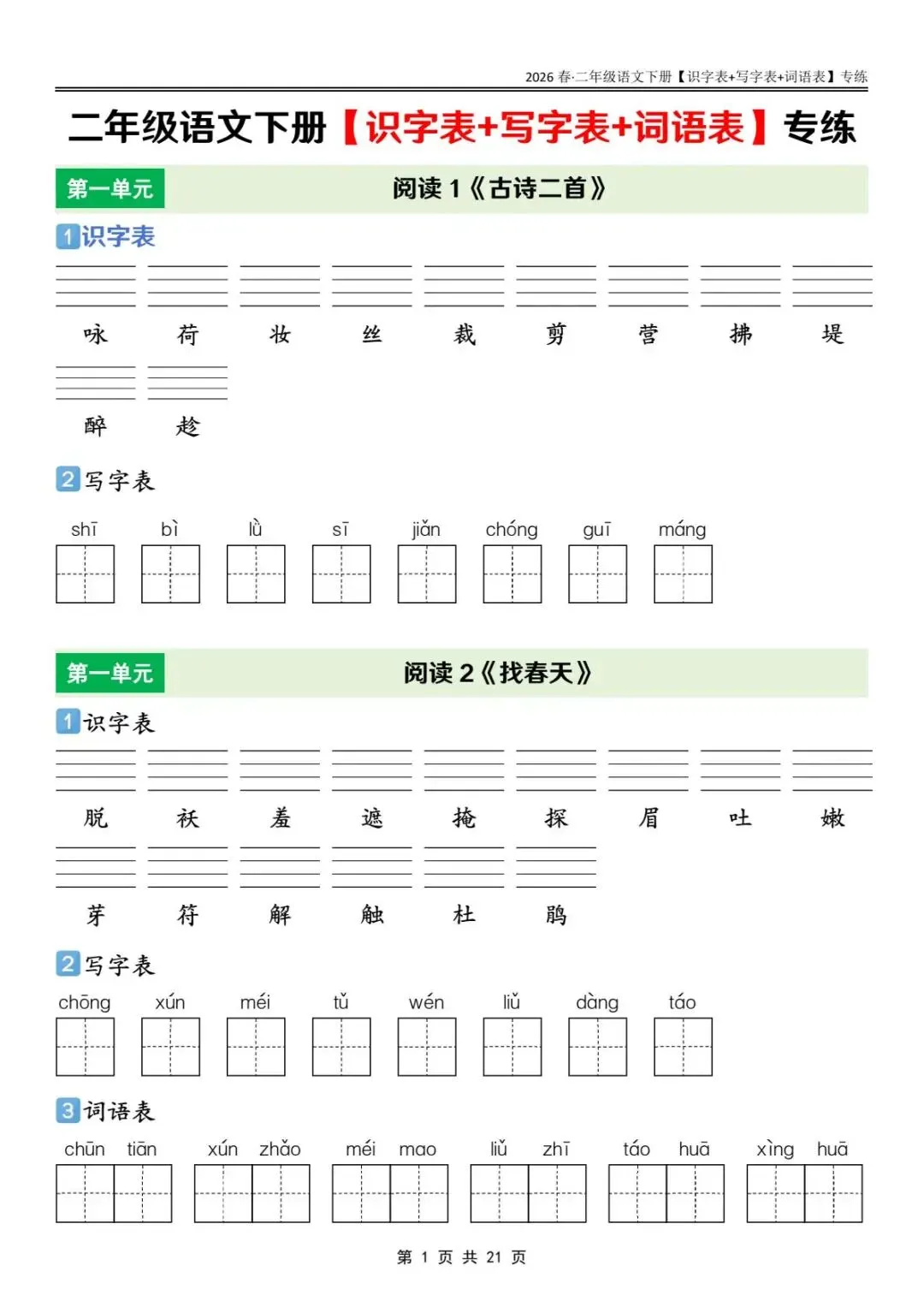 小学语文《课后三表》,建议各位家长领取打印给孩子学习!