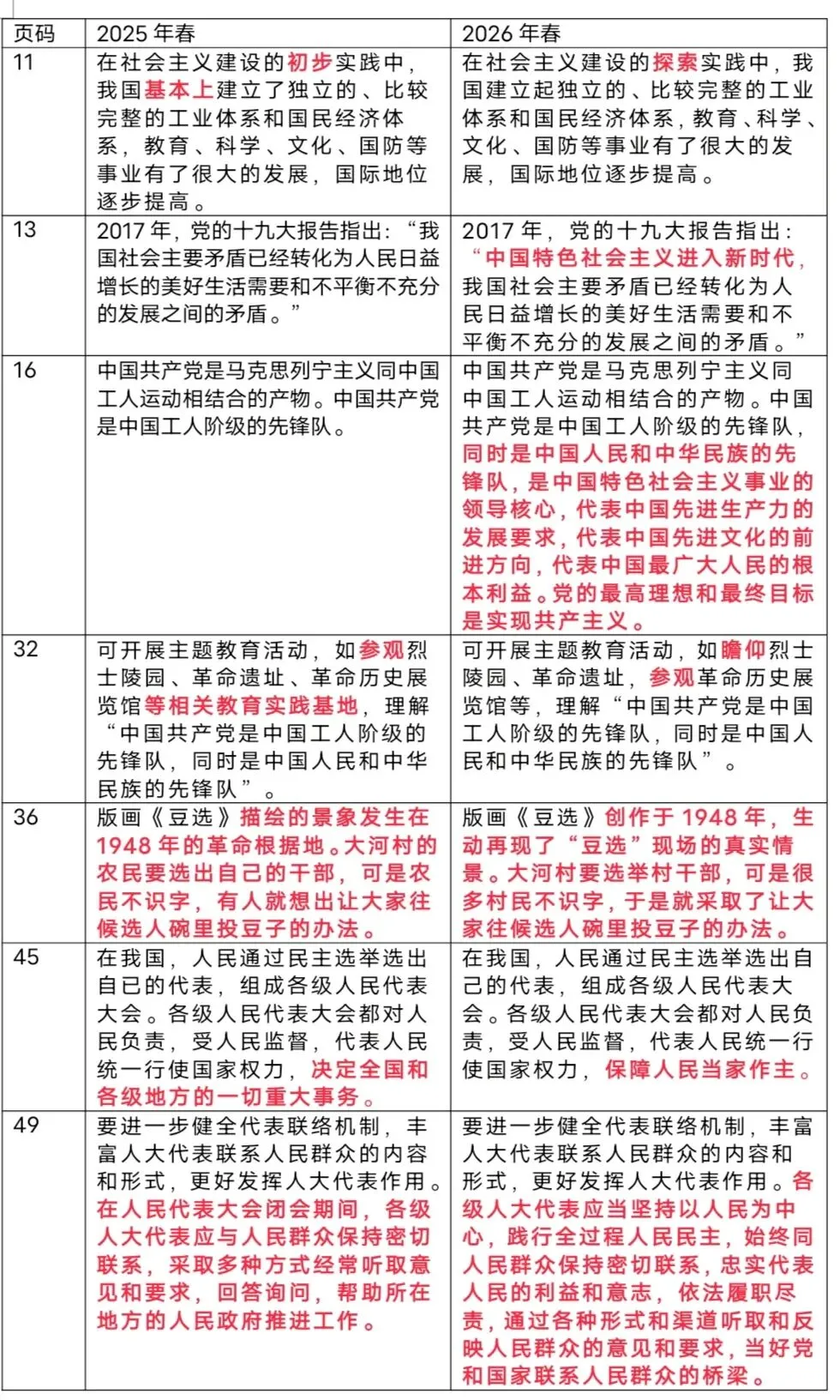 >教材变动:高中政治必修三政治与法治新旧教材对照