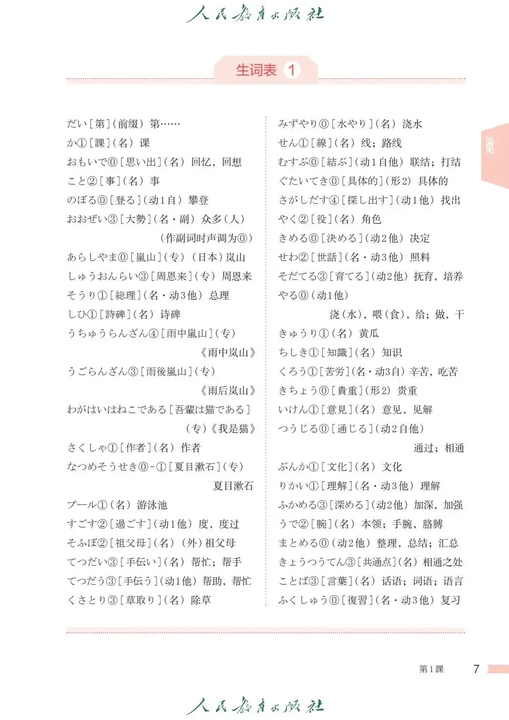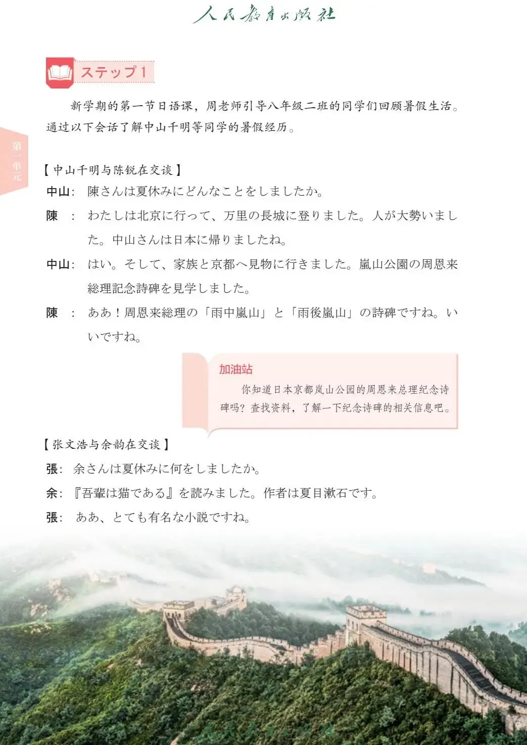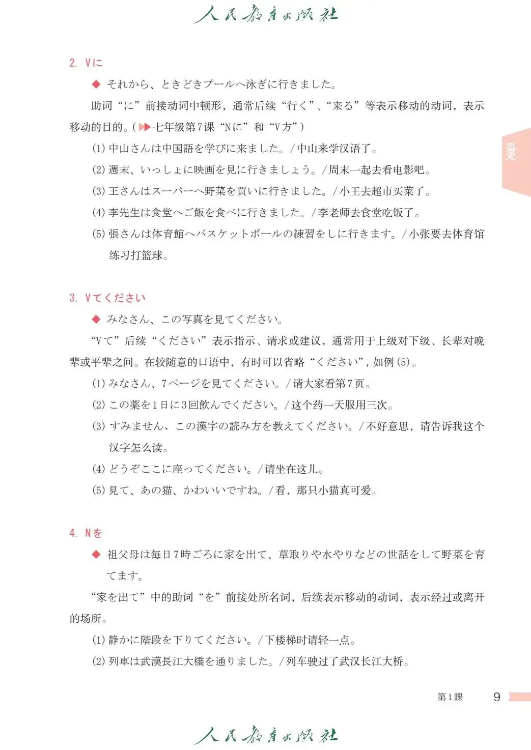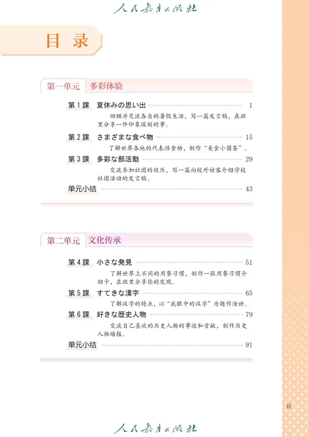 【初中教材】人教版七八九年级初中日语(上下册)电子课本(PDF最新版,可打印)