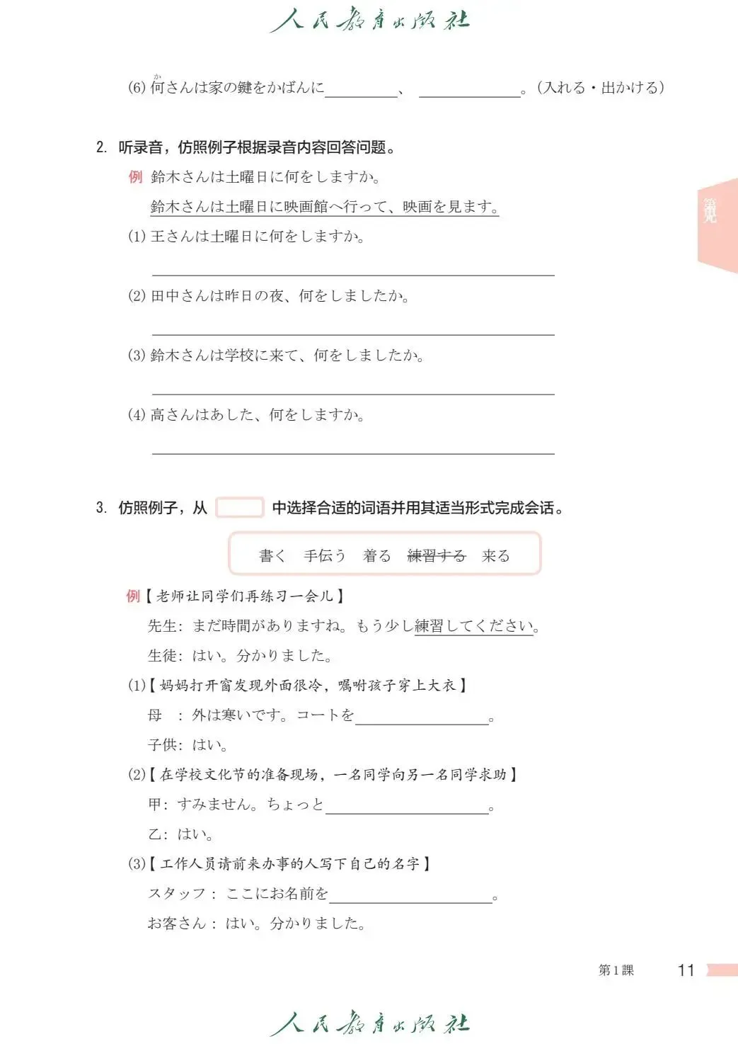 >【初中教材】人教版七八九年级初中日语(上下册)电子课本(PDF最新版,可打印)
