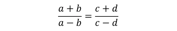 ∠C是个钝角,这一条件直接拉低了本题难度,否则还得讨论M、D、H的相对位置。AH是高,图中一堆直角三角形,果断勾股定理走起。要求三角形ABC的面积,高AH已知,求出对应底边BC即可,考虑到M是BC中点,不妨设BM = x,则AB² = BH² + AH² = (4√6 + x)² + 25AC² = CH² + AH² = (4√6 - x)² + 25上面的方程当然可以直接去分母强行化解,但是大可不必。肉眼可见,方程分子分母结构相当规整,此时轮到合分比定理出场。这就是合分比定理,证明相当简单,这里不做赘述,现行北师版初中课本删掉了这个定理,属实莫名其妙。瞬间可得x² = 73,故x = √73,三角形ABC面积为5x = 5√73。