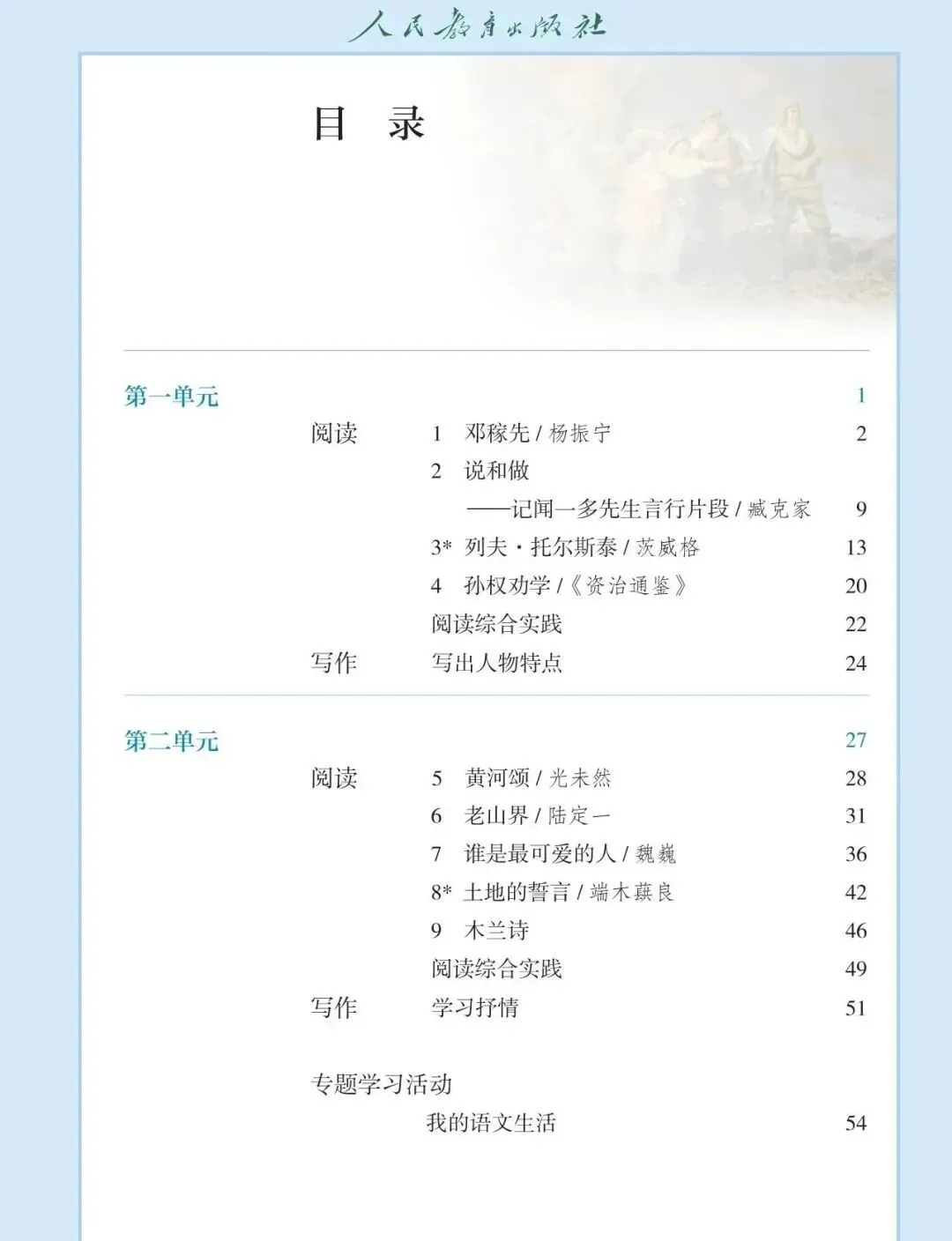2026春新版教材初中七年级下册语文人教版电子课本(高清PDF,可打印)