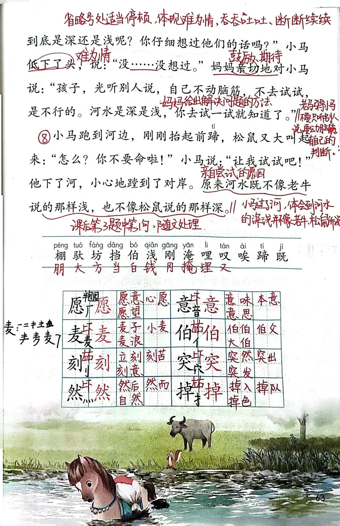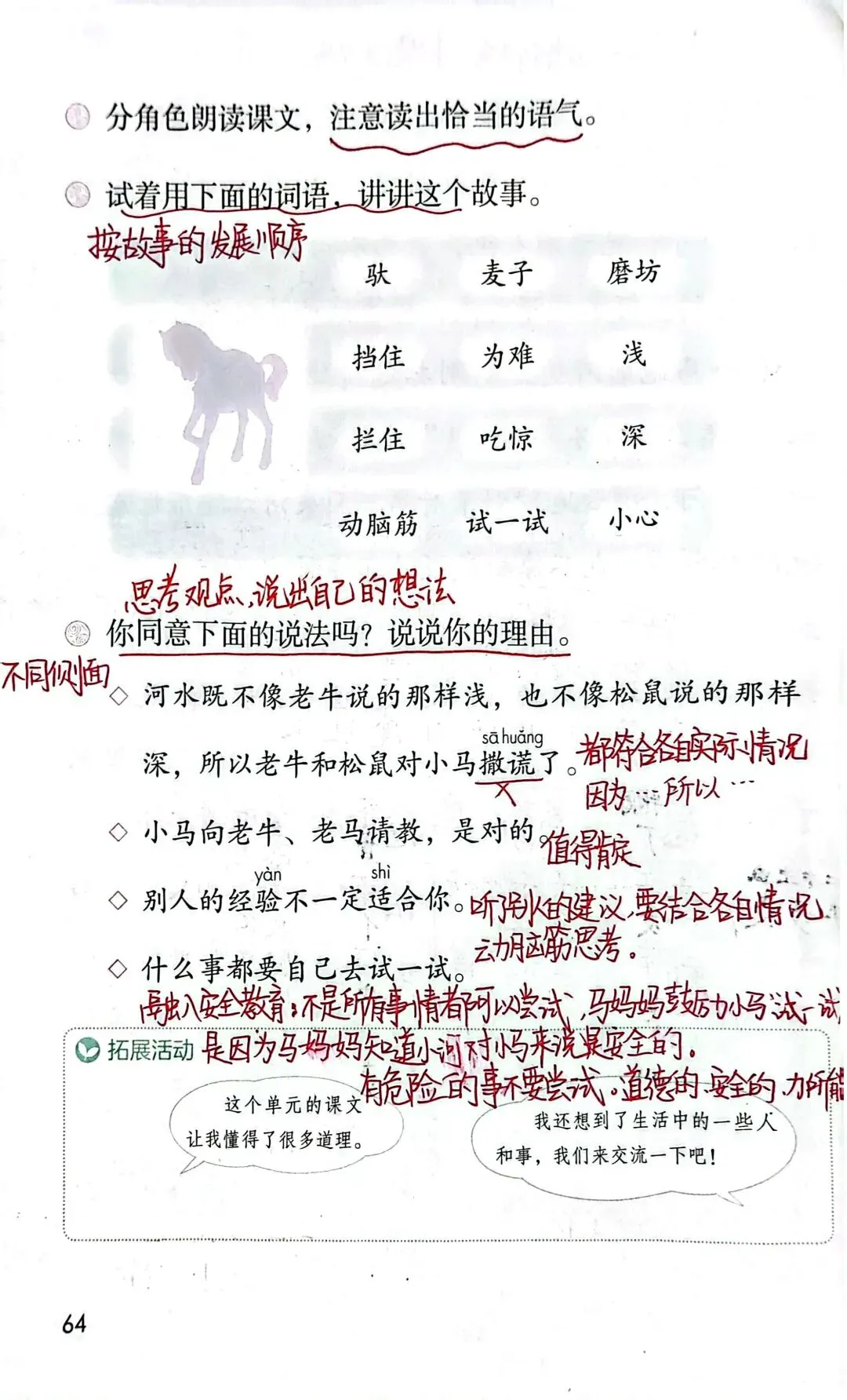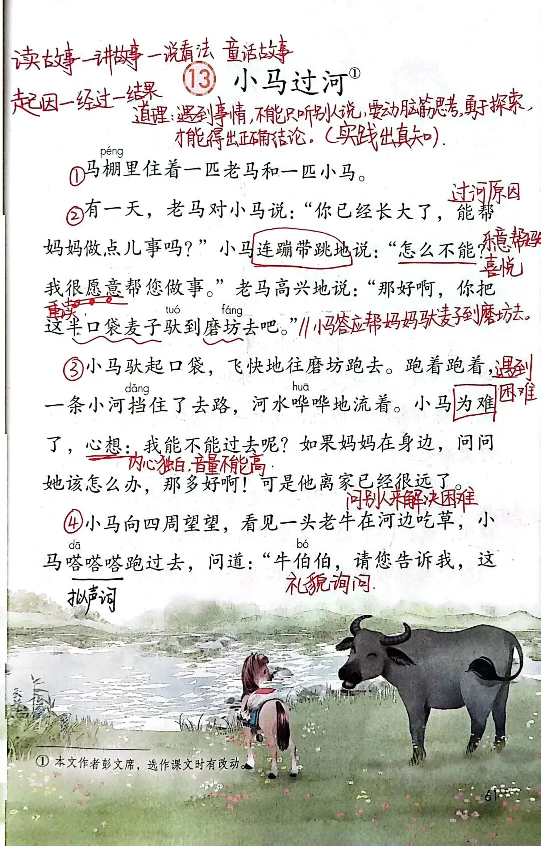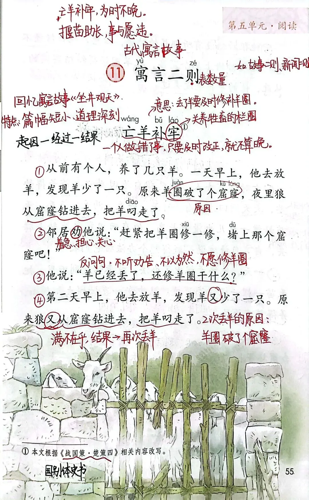 第五单元围绕“思考与尝试”这个人文主题编排了《寓言二则》《画杨桃》《小马过河》3篇课文,其中《寓言二则》分别是《亡羊补牢》和《揠苗助长》。这3篇课文旨在引导学生从不同角度思考并从中获得启示。