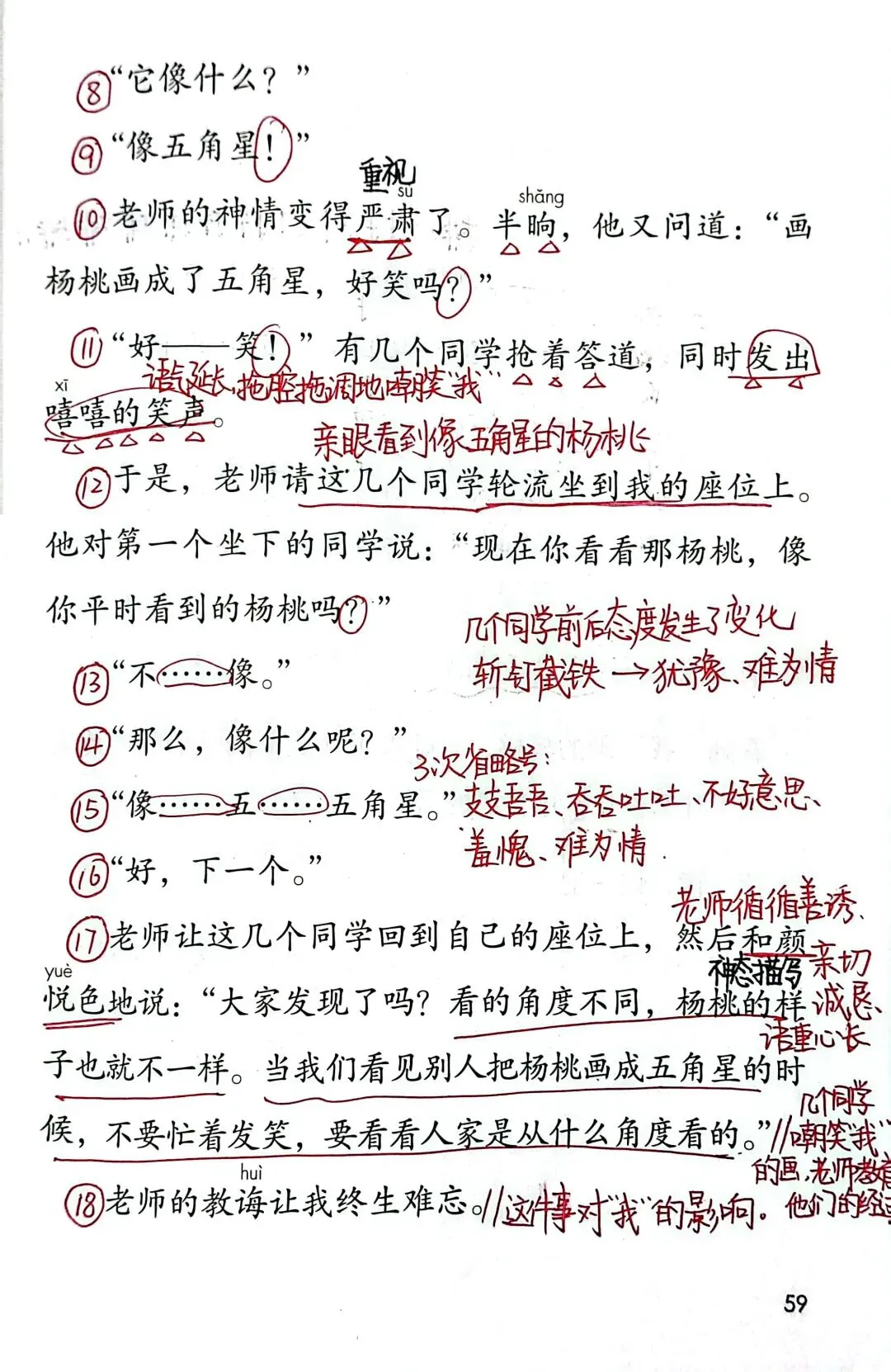 本单元语文要素是“根据课文内容,简单说说自己的感受或想法”,是对二年级上册“对感兴趣的内容说出自己的感受或想法”的进一步发展。