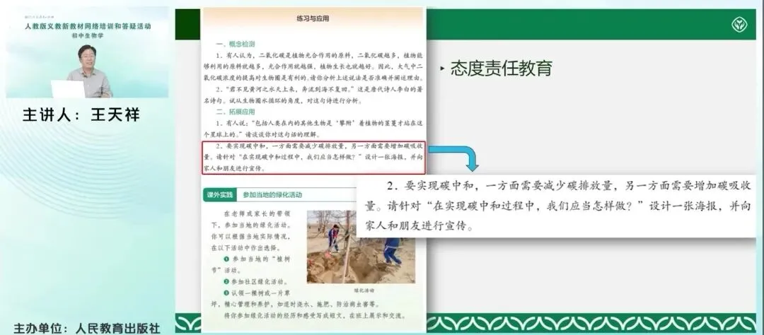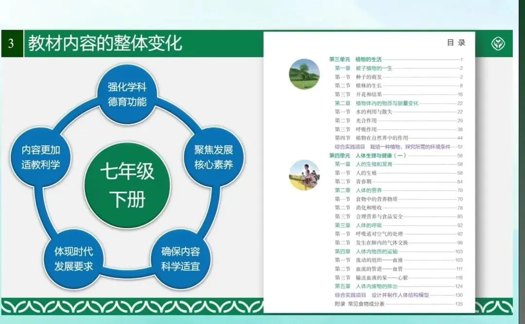 2月5号人教社的专家对2024版七下新教材进行了网络培训答疑。