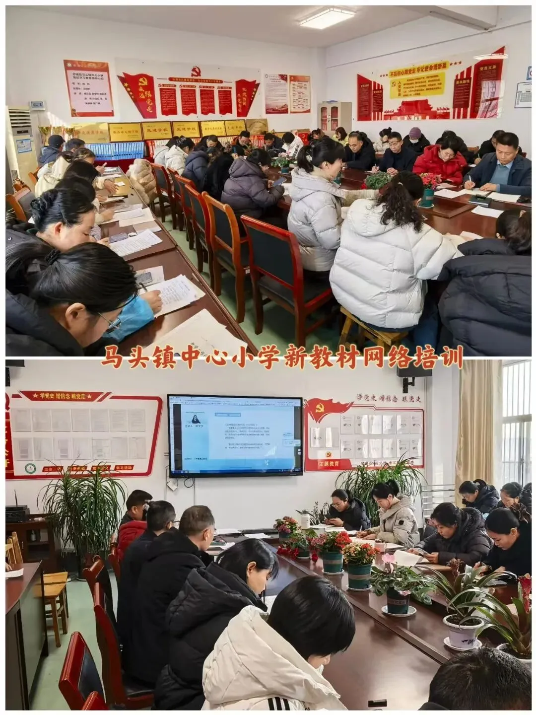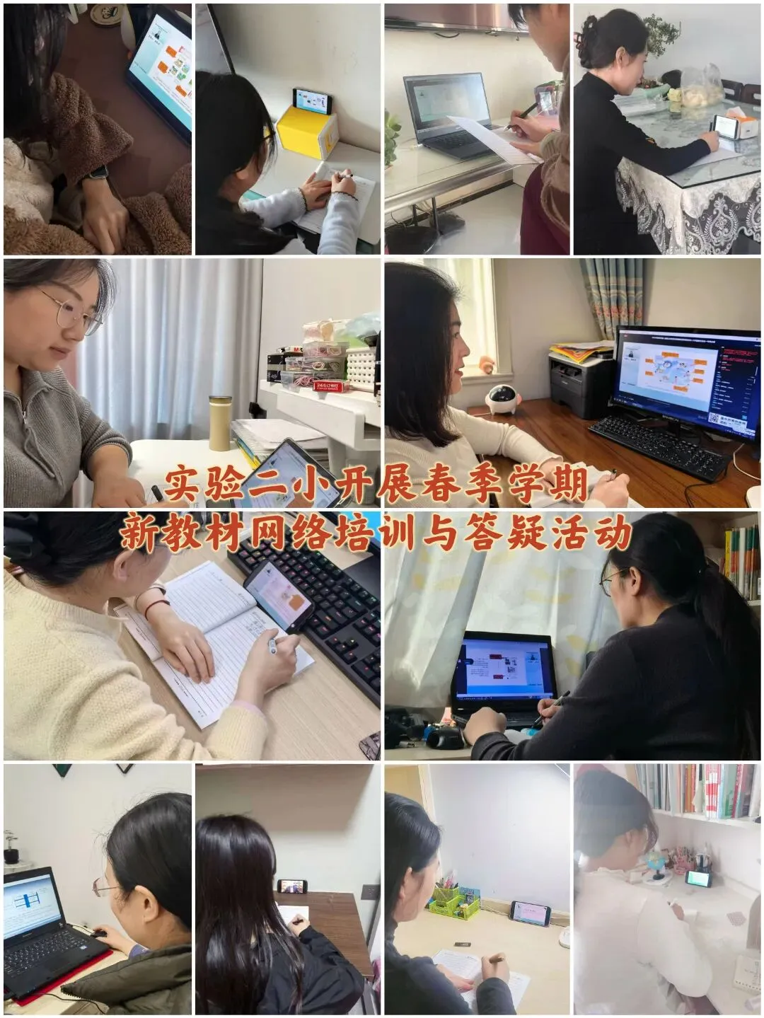 本次培训采用“集中学习+自主参训”结合的形式:实验五小、马头镇中心小学等学校组织教师在会议室集中观看培训直播,同步记录教材修订要点、教学建议,现场交流教学思路;李庄镇中心小学等校教师结合工作安排,通过电脑、平板、手机等设备居家参与培训,全程认真记录笔记,确保学习实效。