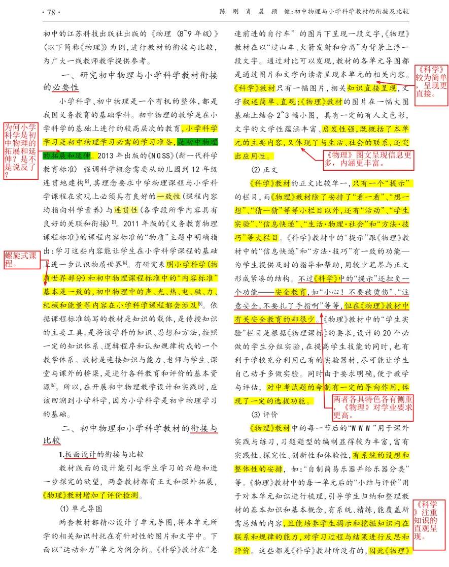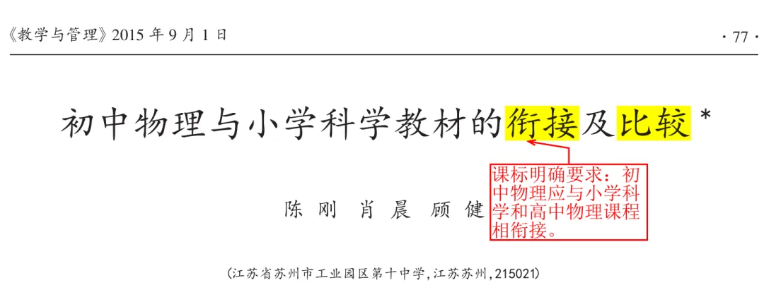【学习心得】论文4:初中物理与小学科学教材的衔接及比较