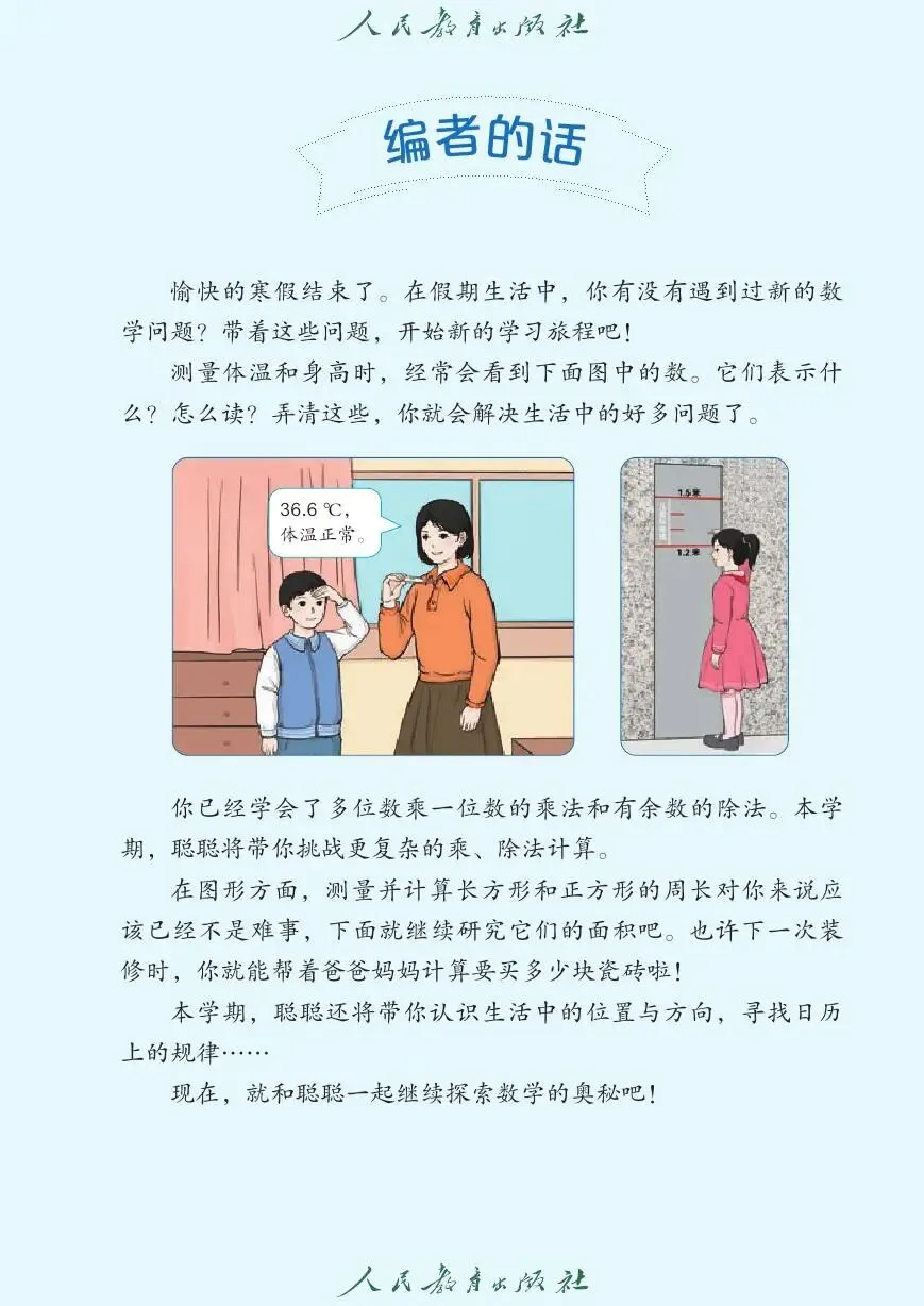 以下仅为部分内容展示,下载完整人教版小学三年级数学下册电子版教材,请到页尾【免费资料下载】。