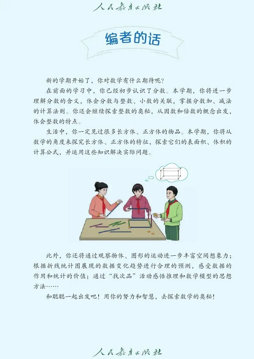 以下仅为部分内容展示,下载完整人教版小学五年级数学下册电子版教材,请到页尾【免费资料下载】。