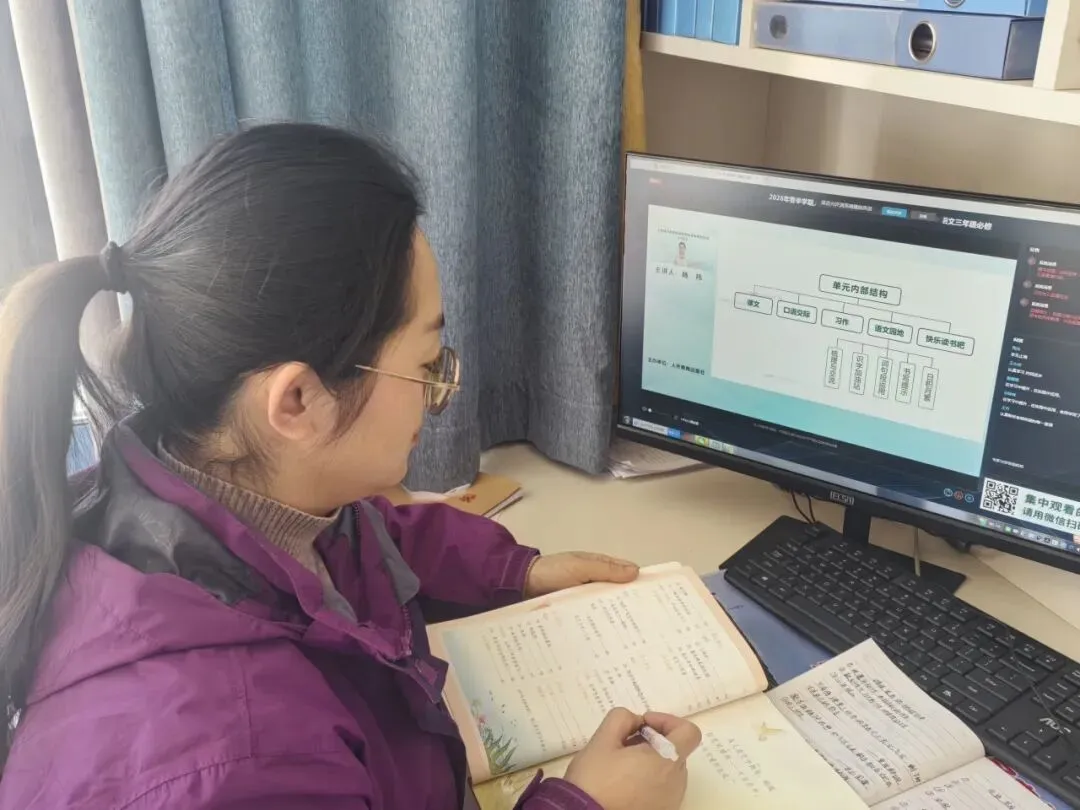 本次线上培训为期两天,内容充实、注重实效。语文、道德与法治学科教师全程专注参与,细致梳理培训要点,并紧密结合教学实际展开思考与反思,努力将专家的理念转化为自身的教学认知,把教材的要求落实为课堂中的具体实践。参训教师认为,本次培训既有理论高度,又具实践指导意义,为新学期精准教学、提质增效提供了扎实的专业支撑。