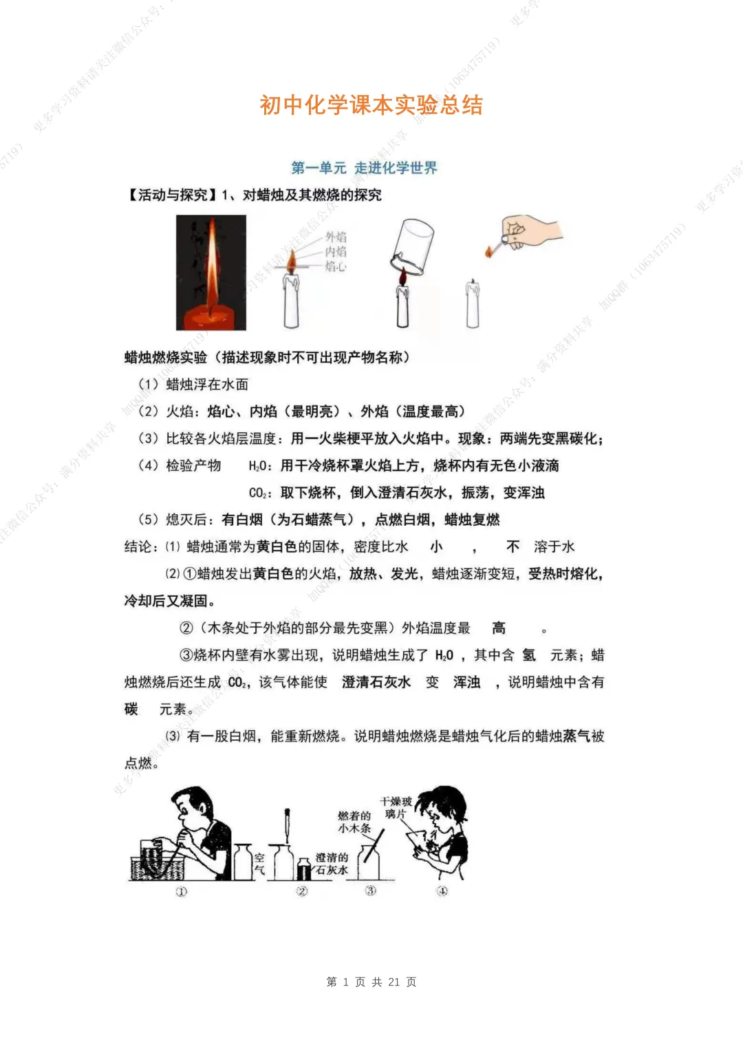 22.人教版九年级上册化学《走进化学世界》知识+练习题精选,电子版可打印