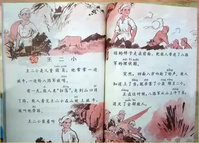 看到王二小这三个.字,.心头猛地一紧.。那.个.把敌人带进埋伏.圈的放牛娃,是我们最早的英雄偶像,每次读到他牺牲的那一段,全班同学都要偷偷抹眼泪。