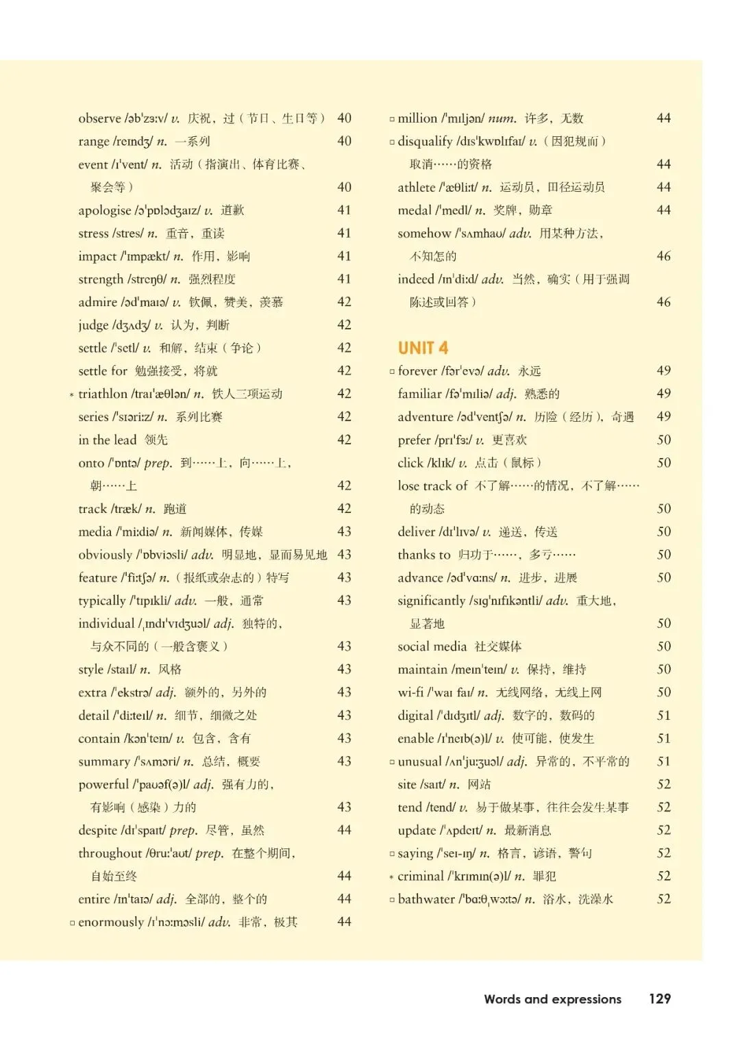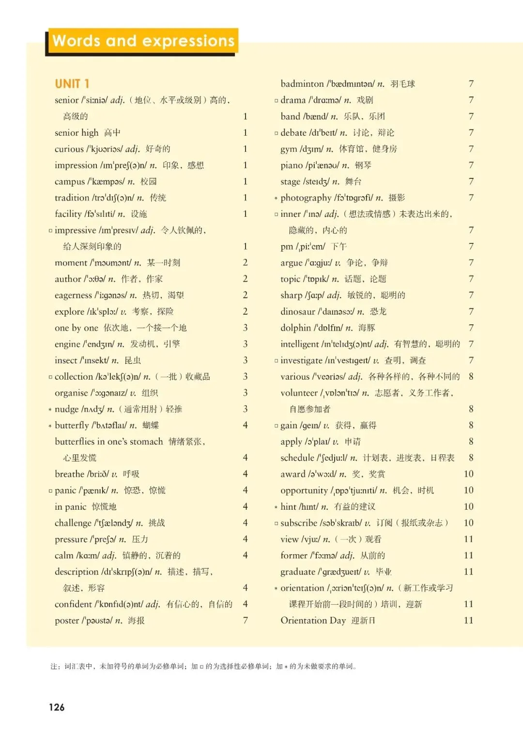 外研社版高中英语必修一单词高频30个