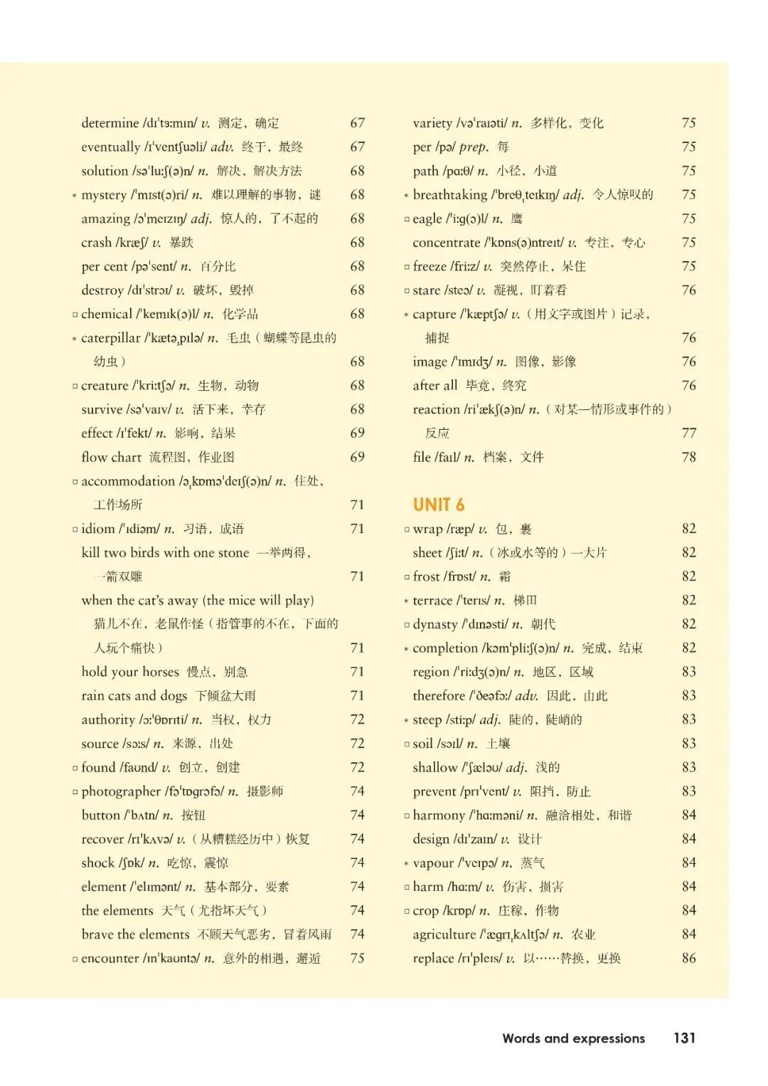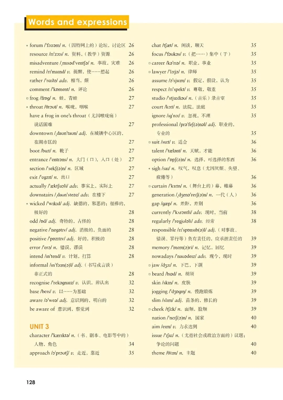 1、schedule /ˈʃedjuːl/ n.&v. 日程安排2、confidence /ˈkɒnfɪdəns/ n. 信心3、challenge /ˈtʃælɪndʒ/ n.&v. 挑战4、attitude /ˈætɪtjuːd/ n. 态度5、impress /ɪmˈpres/ v. 给……留下印象6、confidence /ˈkɒnfɪdəns/ n. 自信7、concentrate /ˈkɒnsntreɪt/ v. 集中注意力8、determine /dɪˈtɜːmɪn/ v. 决定;下定决心9、responsible /rɪˈspɒnsəbl/ adj. 负责的10、independent /ˌɪndɪˈpendənt/ adj. 独立的11、confidence /ˈkɒnfɪdəns/ n. 自信12、encourage /ɪnˈkʌrɪdʒ/ v. 鼓励13、goal /ɡəʊl/ n. 目标14、improve /ɪmˈpruːv/ v. 提高;改善15、positive /ˈpɒzətɪv/ adj. 积极的16、pressure /ˈpreʃə/ n. 压力17、strategy /ˈstrætədʒi/ n. 策略18、support /səˈpɔːt/ v.&n. 支持19、confidence /ˈkɒnfɪdəns/ n. 自信20、adapt /əˈdæpt/ v. 适应21、focus /ˈfəʊkəs/ v.&n. 关注22、confident /ˈkɒnfɪdənt/ adj. 自信的23、method /ˈmeθəd/ n. 方法24、confidence /ˈkɒnfɪdəns/ n. 自信25、efficient /ɪˈfɪʃnt/ adj. 高效的26、participate /pɑːˈtɪsɪpeɪt/ v. 参加27、confidence /ˈkɒnfɪdəns/ n. 自信28、achieve /əˈtʃiːv/ v. 实现29、confidence /ˈkɒnfɪdəns/ n. 自信30、progress /ˈprəʊɡres/ n.&v. 进步