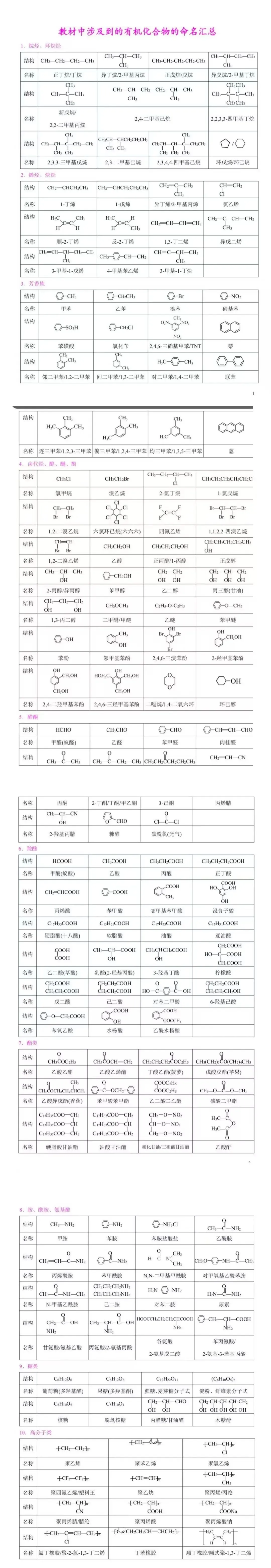 >高中教材中有机物命名汇编