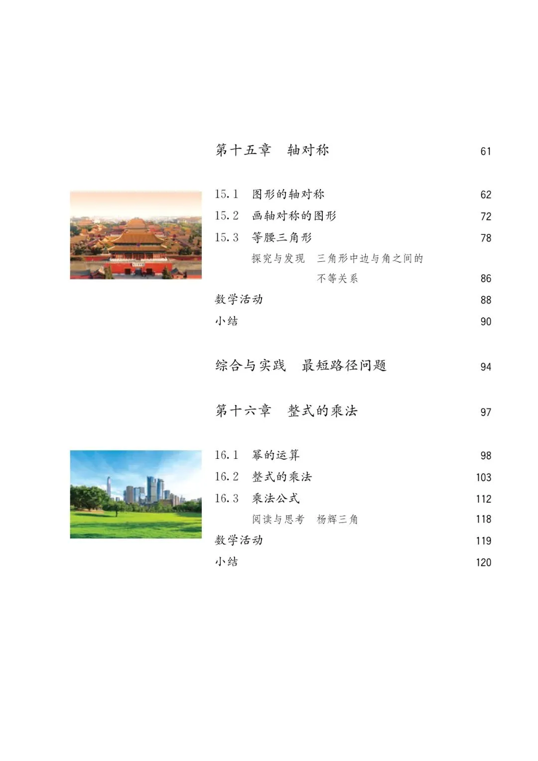 【3】第十五章 轴对称:主要内容包含轴对称及轴对称图形的概念、轴对称图形的性质、轴对称图形的作图方法、等腰三角形的性质与判定、轴对称思想在最短路径问题中的应用
