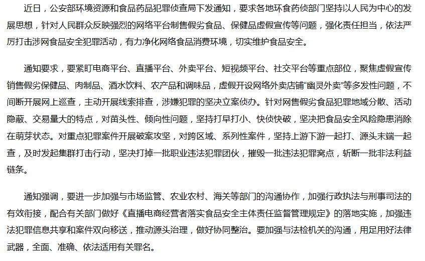 时政热点+初中道德与法治 知识点&考点链接 本则新闻核心:公安部等部门坚持以人民为中心,依法行政、严格执法,严厉打击网络制售假劣食品、保健品违法犯罪,净化网络消费环境,维护公民权益、社会公平正义与法治秩序。结合部编版初中《道德与法治》教材,核心知识点与考点梳理如下: 一、公民权利层面 1. 生命健康权受法律保护 • 教材链接:八年级下册「公民权利」,生命健康权是公民最根本、首要的人身权利,是公民生存和发展的基础,受我国宪法和法律严格保护。 • 考点链接 设问:国家严打涉网食品安全犯罪,首要保障公民哪项基本权利? 答题:生命健康权;法律禁止任何组织和个人非法侵害公民生命健康,违者承担法律责任。 2. 消费者合法权益受法律保护 • 教材链接:《消费者权益保护法》保障消费者安全权、知情权、公平交易权等核心权利。 • 考点链接 设问:网络假劣食品、虚假宣传、“幽灵外卖”侵犯消费者哪些权利? 答题:①安全权(人身、财产安全);②知情权(知悉商品/服务真实情况);③公平交易权(质量保障、拒绝欺诈)。 二、发展理念与民生层面 以人民为中心的发展思想、增进民生福祉 • 教材链接:九年级上册「踏上强国之路」,党和政府坚持以人民为中心的发展思想;发展的根本目的是增进民生福祉;让人民共享发展成果,满足人民美好生活需要。 • 考点链接 设问:为何聚焦群众反映强烈的食品问题开展专项整治? 答题:①坚持以人民为中心,关注民生、保障民生;②维护人民群众切身利益,守护“舌尖上的安全”;③解决群众急难愁盼,提升人民幸福感、安全感。 三、法治建设层面(核心高频考点) 1. 依法治国是基本方略 • 教材链接:九年级上册「建设法治中国」,依法治国是党领导人民治理国家的基本方略;全面依法治国是中国特色社会主义的本质要求和重要保障。 • 考点链接 设问:材料体现我国坚持什么治国方略?其总目标是什么? 答题:坚持依法治国;总目标是建设中国特色社会主义法治体系,建设社会主义法治国家。 2. 依法行政、法治政府建设 • 教材链接:九年级上册「建设法治中国」,依法行政是法治政府行使权力的基本准则;政府宗旨是为人民服务,工作对人民负责、为人民谋利益;行政机关坚持法定职责必须为、法无授权不可为,勇于担当、严格执法。 • 考点链接 设问:公安部依法履职、打击食品犯罪,体现行政机关如何行使职权? 答题:①坚持依法行政,严格履行市场监管、社会治安、公共服务职责;②法定职责必须为,主动排查线索、打击犯罪,不推诿、不懈怠;③坚持对人民负责,维护群众合法权益。 3. 厉行法治的要求(严格执法+公正司法+部门衔接) • 教材链接:九年级上册「厉行法治」,厉行法治要推进科学立法、严格执法、公正司法、全民守法;加强行政执法与刑事司法衔接,形成法治合力。 • 考点链接 设问:“行政执法与刑事司法衔接、与法检机关沟通”体现厉行法治哪些要求? 答题:①行政机关严格执法,司法机关公正司法;②各机关分工协作、依法履职,用足用好法律武器。 4. 法治维护社会公平正义 • 教材链接:八年级下册「崇尚法治精神」,公平正义是法治社会的核心价值;法治是捍卫公平正义的重要保障;国家制裁违法犯罪,守护正义、维护社会秩序。 • 考点链接 设问:整治网络食品乱象对维护公平正义有何意义? 答题:①制裁不法商家,保护消费者权益,维护市场公平秩序;②守护社会正义,营造诚信、安全的网络消费环境;③促进社会和谐稳定。 四、社会治理与网络规则层面 1. 共建共治共享的社会治理格局 • 教材链接:九年级上册「和谐与梦想」,构建共建共治共享的社会治理格局;国家机关、相关部门协同联动,推进源头治理、系统治理。 • 考点链接 设问:公安部联合市场监管、海关、法检等部门协作,体现什么治理理念? 答题:体现多元协同、共建共治共享理念,打破部门壁垒,形成打击违法犯罪的合力。 2. 网络生活的基本准则:恪守道德、遵守法律 • 教材链接:八年级上册「网络生活新空间」,网络无限,自由有界;恪守道德、遵守法律是网络生活的基本准则;网络经营者、参与者必须依法规范自身行为。 • 考点链接 设问:电商、直播、外卖平台应如何规范经营? 答题:①依法经营、诚信经营,落实食品安全主体责任;②不虚假宣传、不制售假劣食品;③遵守网络规则与市场规则,自觉接受监督。 五、国家机构层面 国家机构分工协作、依法履职 • 教材链接:八年级下册「我国国家机构」,行政机关(公安部、市监局等)行使行政职权,司法机关(检察院、法院)行使司法职权;国家机关分工明确、相互配合,共同维护人民利益与法律权威。 • 考点链接 设问:多部门联合打击跨区域食品犯罪,说明了什么? 答题:①我国国家机构坚持以人民为中心,协同高效履职;②通过跨部门、跨区域联动,彻底摧毁犯罪链条,维护法治权威。 高频答题模板(材料题直接套用) 1. 【体现/说明类】答题模板 材料中相关部门的做法,体现了: ①我国坚持依法治国基本方略,全面推进法治中国建设; ②党和政府坚持以人民为中心的发展思想,保障民生、维护人民生命健康; ③行政机关依法行政、法定职责必须为,积极履行监管与执法职责; ④法律保护公民生命健康权、消费者合法权益; ⑤我国维护社会公平正义,构建和谐社会、共建共治共