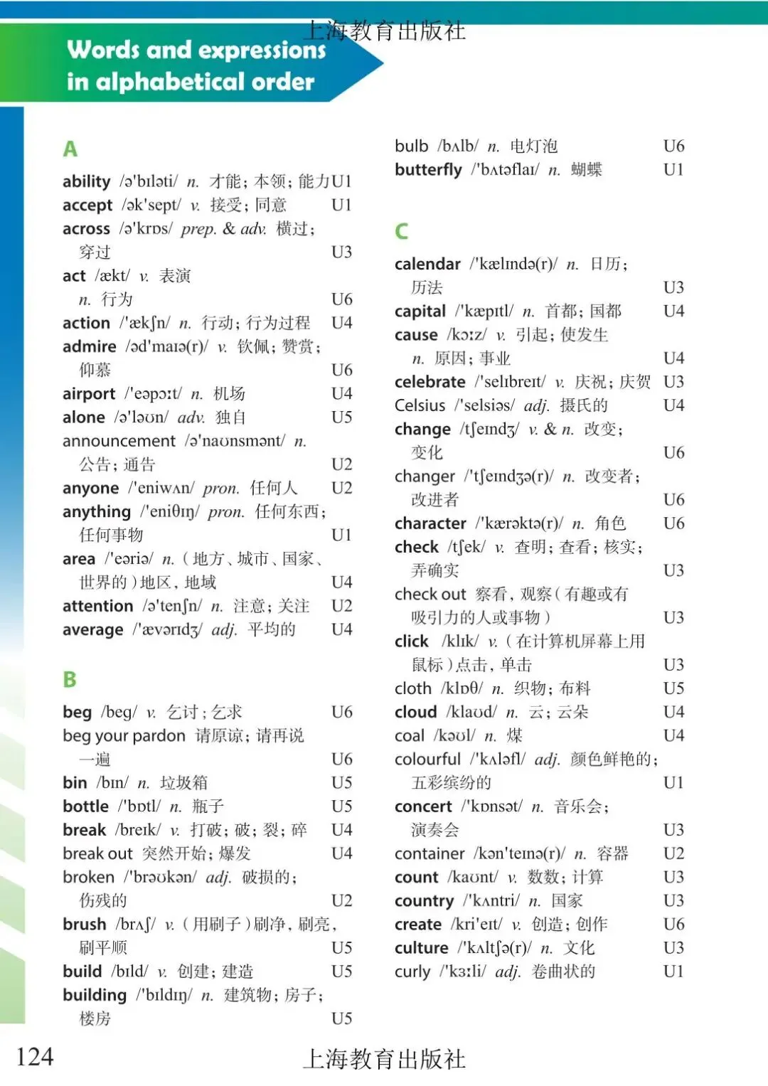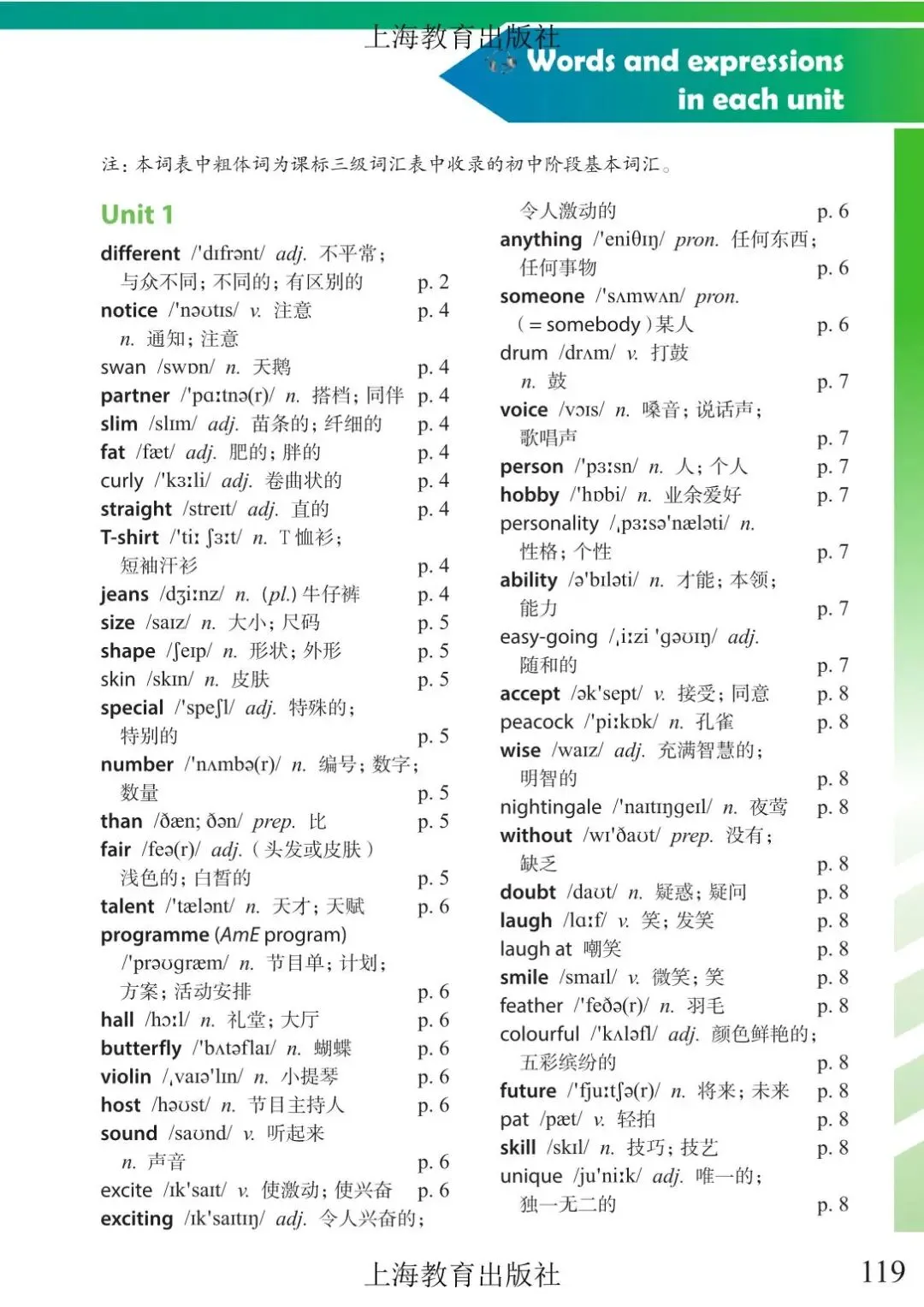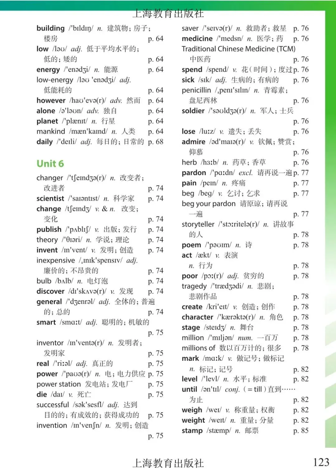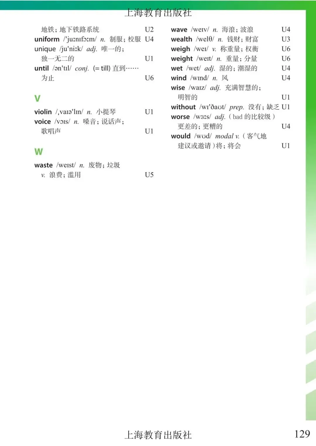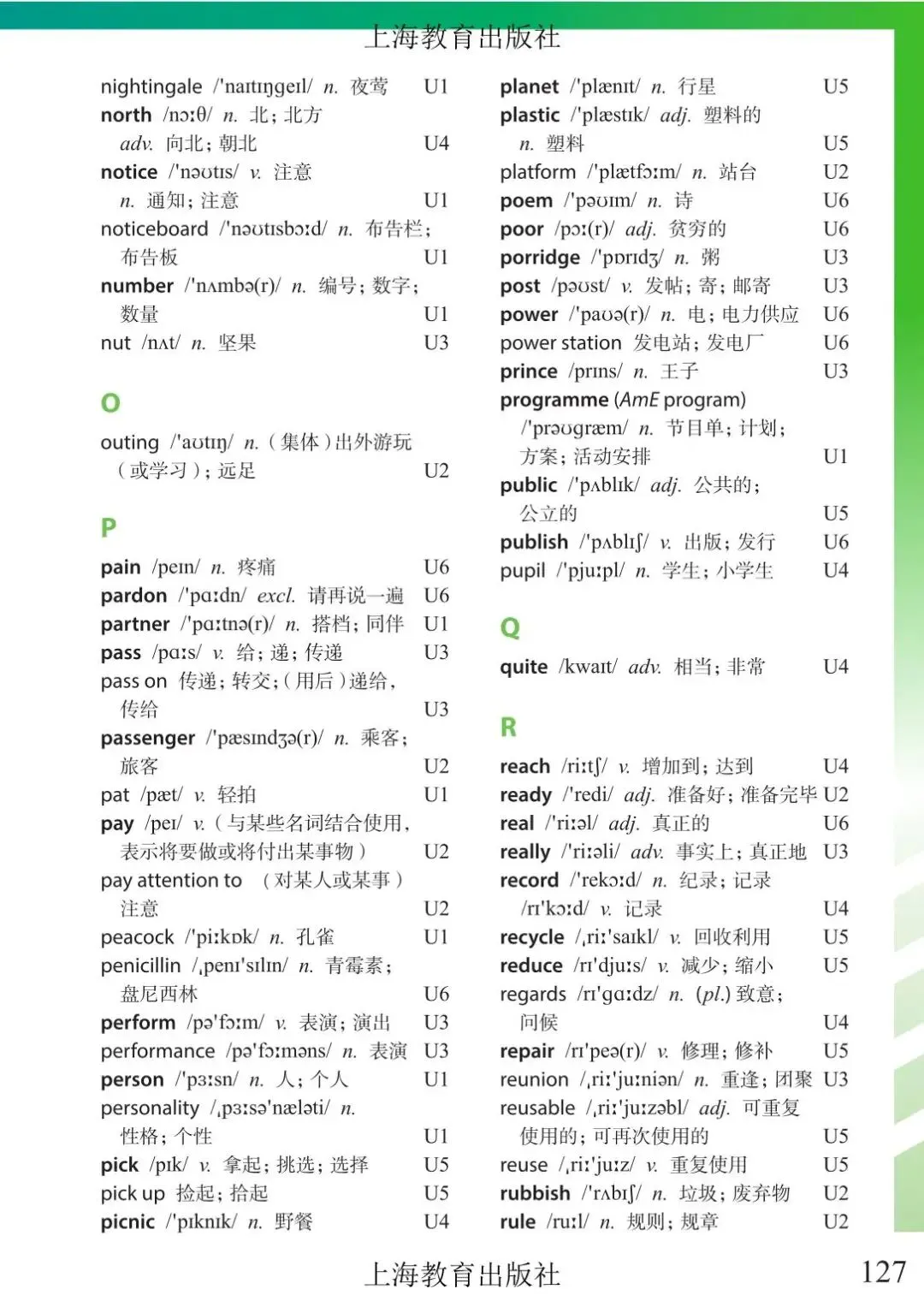 >上海市初中六年级下学期英语教材及音频 附录6 单词表