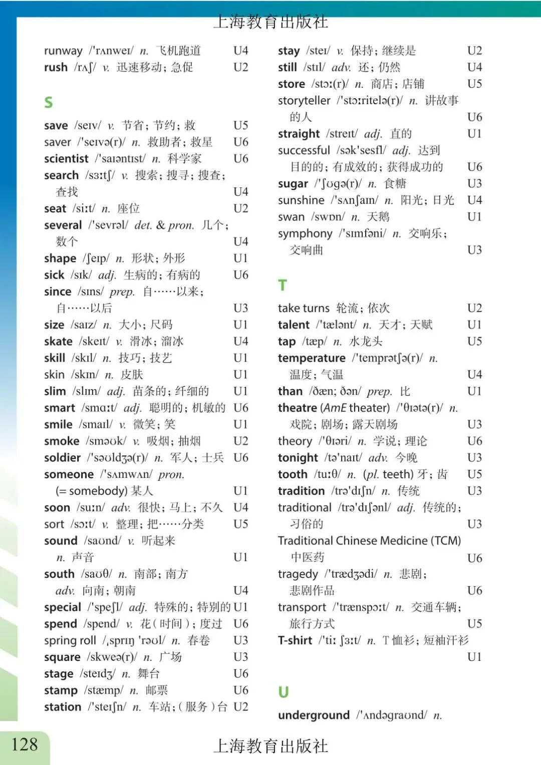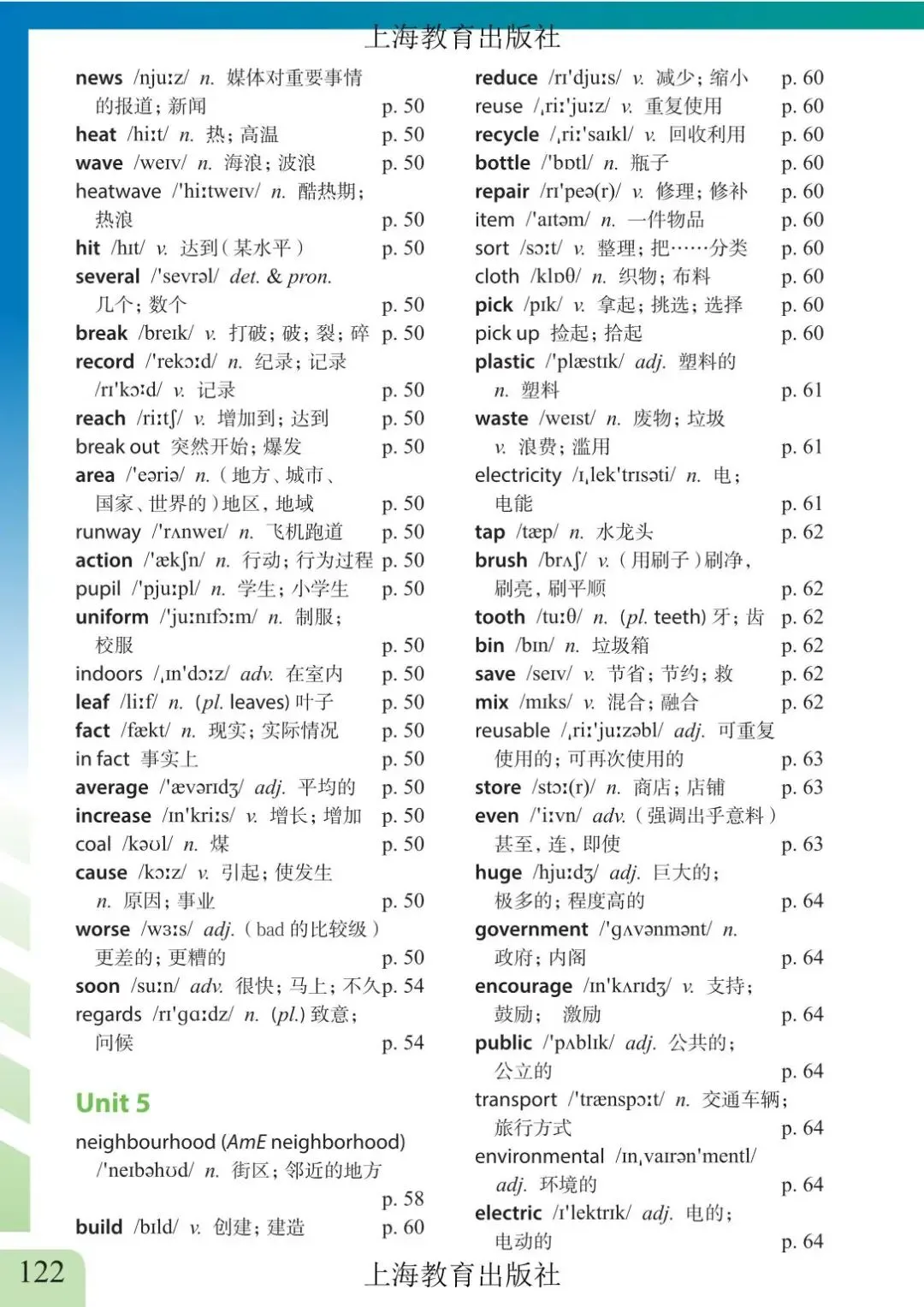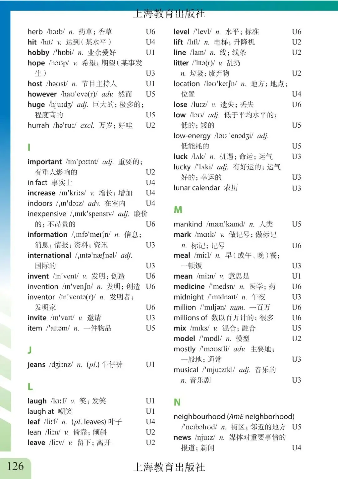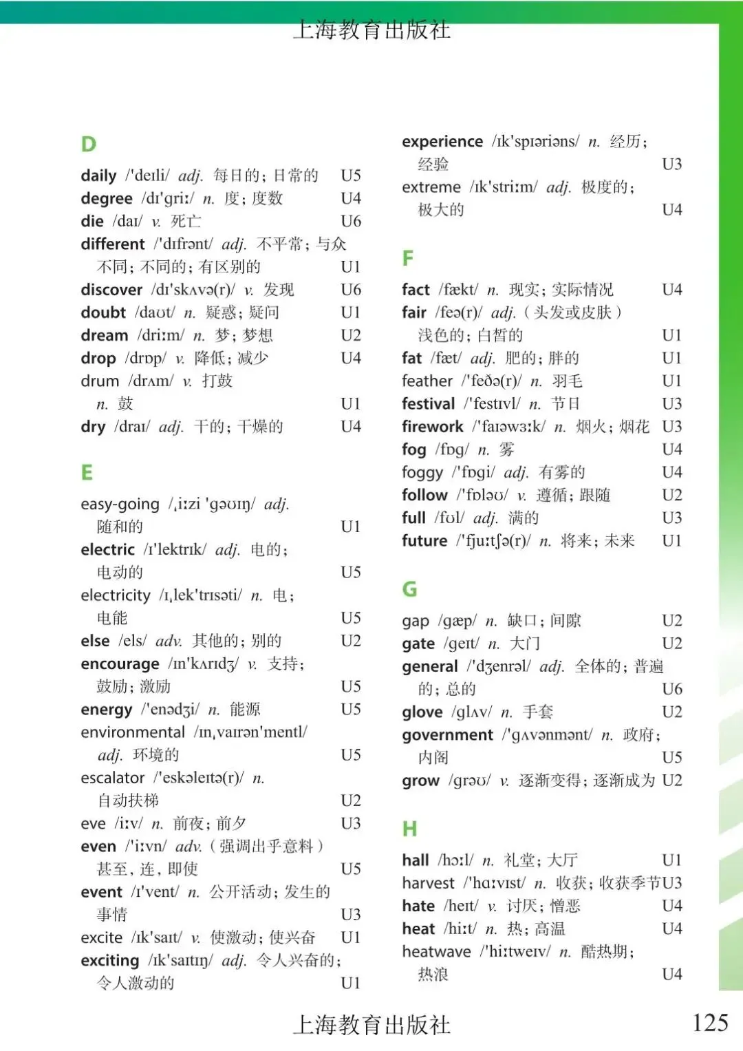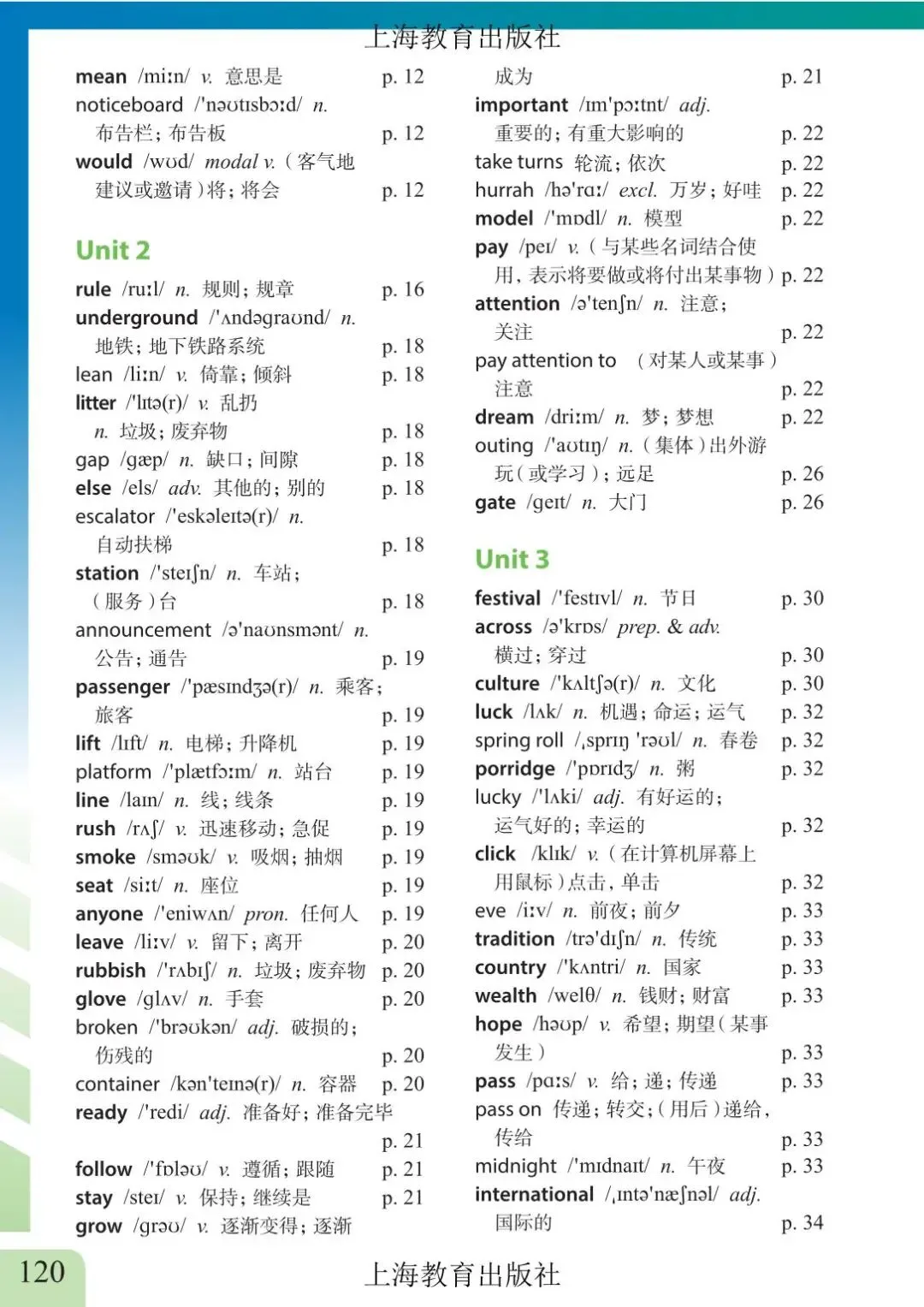 >上海市初中六年级下学期英语教材及音频 附录6 单词表