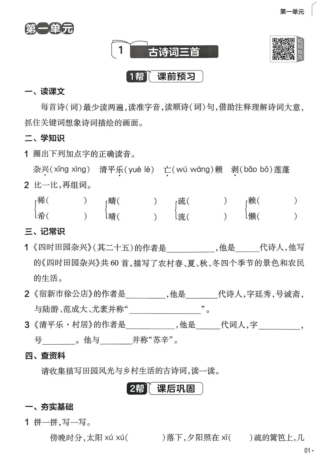 26春人教版四年级下册语文《教材帮+练习帮》,电子版可下载打印。