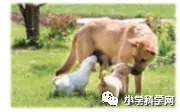 答:右边这只小狗的毛色和狗妈妈一样,都是棕色,左边这只小狗的毛色和狗妈妈不一样,是白色:它们身上都是没有花纹的。