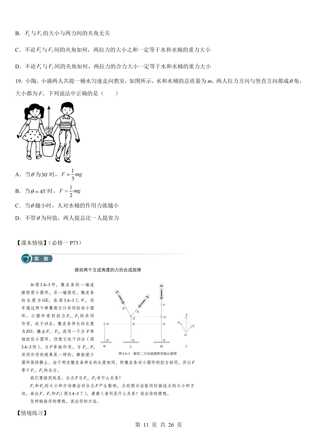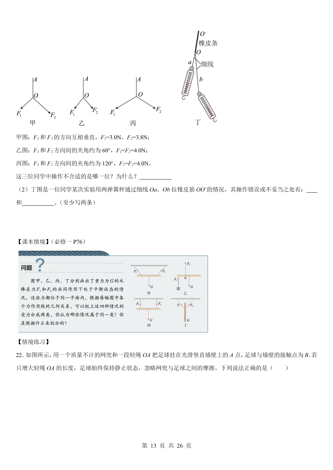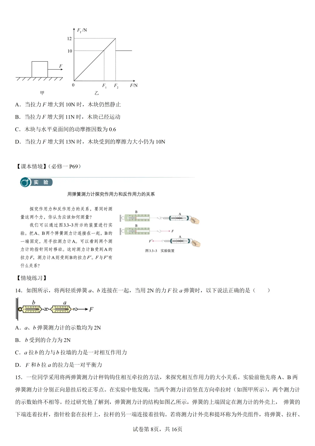 >高中物理回归课本02 相互作用—课本情境与练习