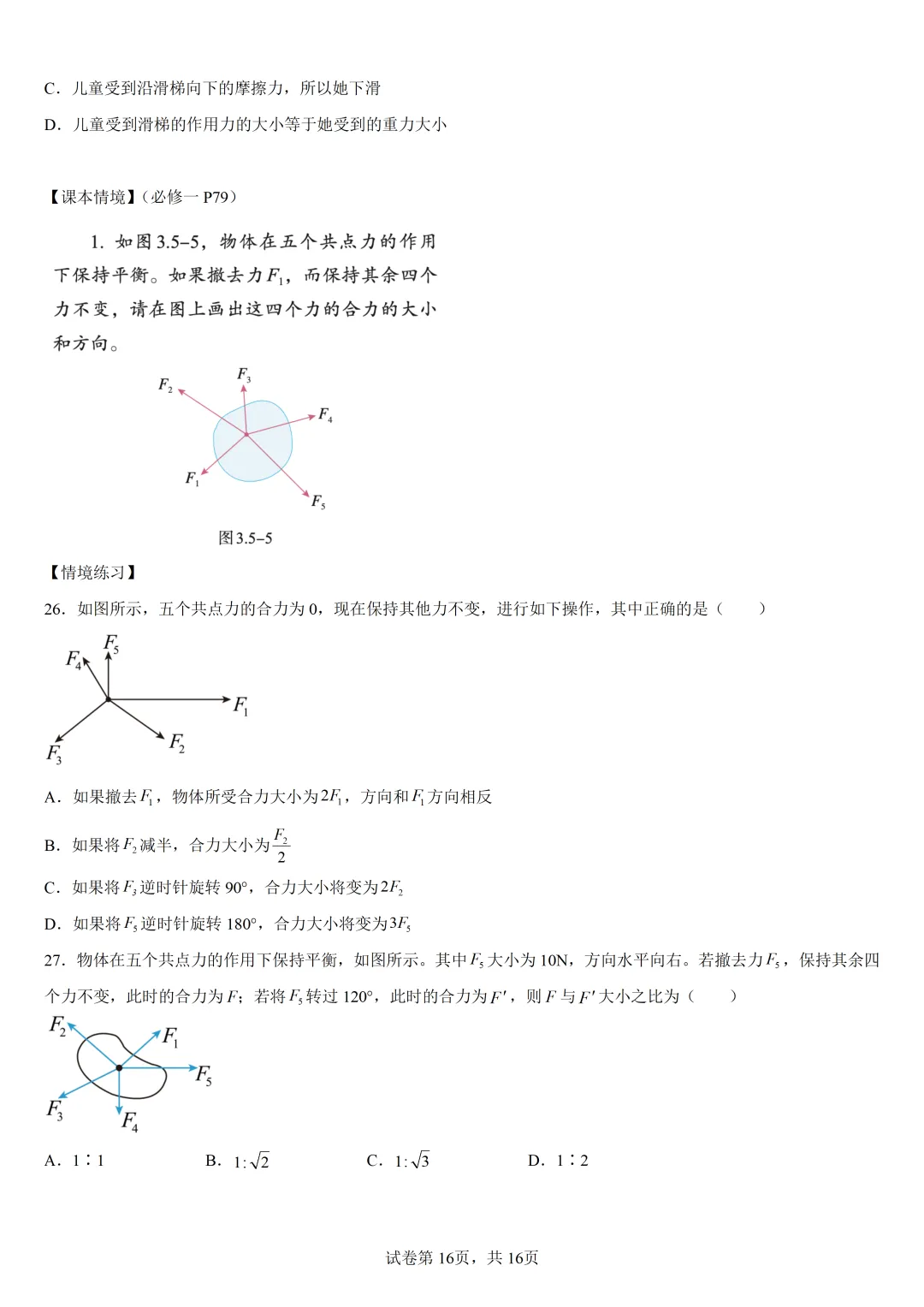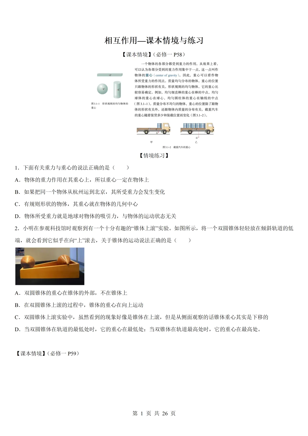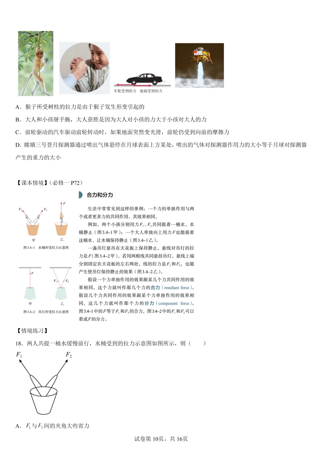 >高中物理回归课本02 相互作用—课本情境与练习