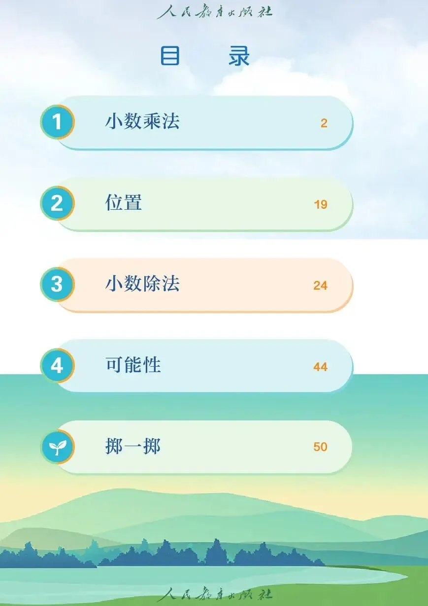 以下为部分内容展示,下载完整版人教小学五年级数学上册电子版教材,请到页尾【免费资料下载】。