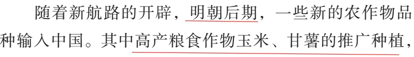1、明后期美洲作物还未推广开来。