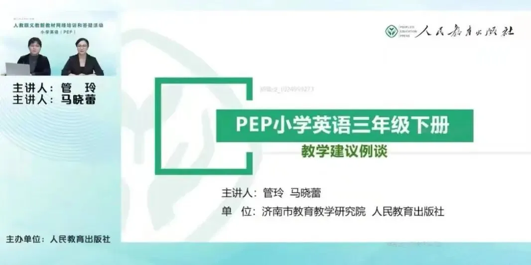 2.2日人教版PEP小学英语三年级下册教材教学建议的专题培训,由管玲和马晓蕾两位老师主讲,本次培训主要围绕新教材的教学理念、核心问题解决方案以及完整的单元教学课例分析展开。以下是主要内容总结: